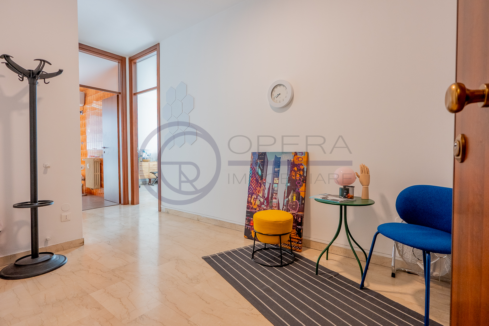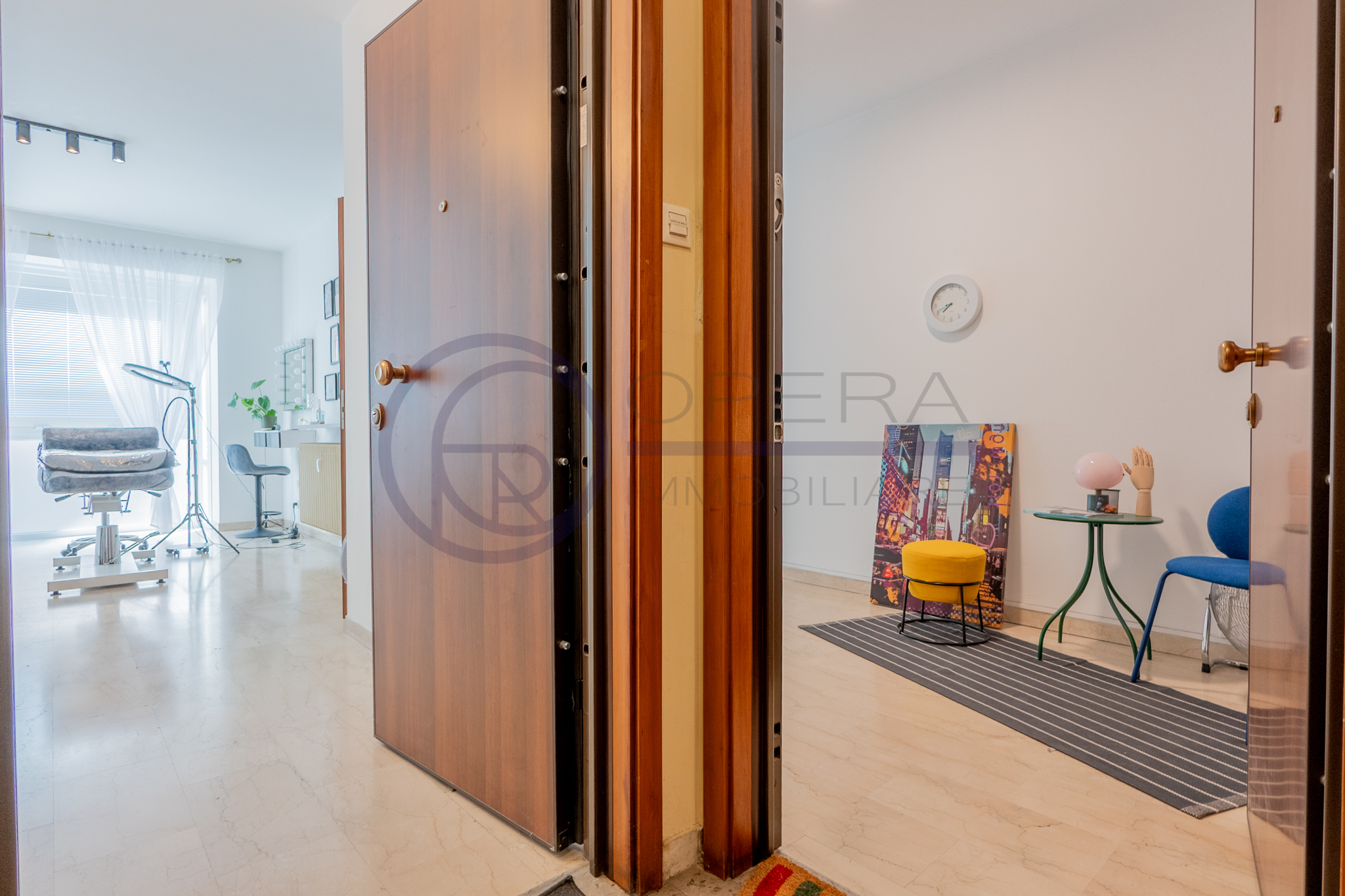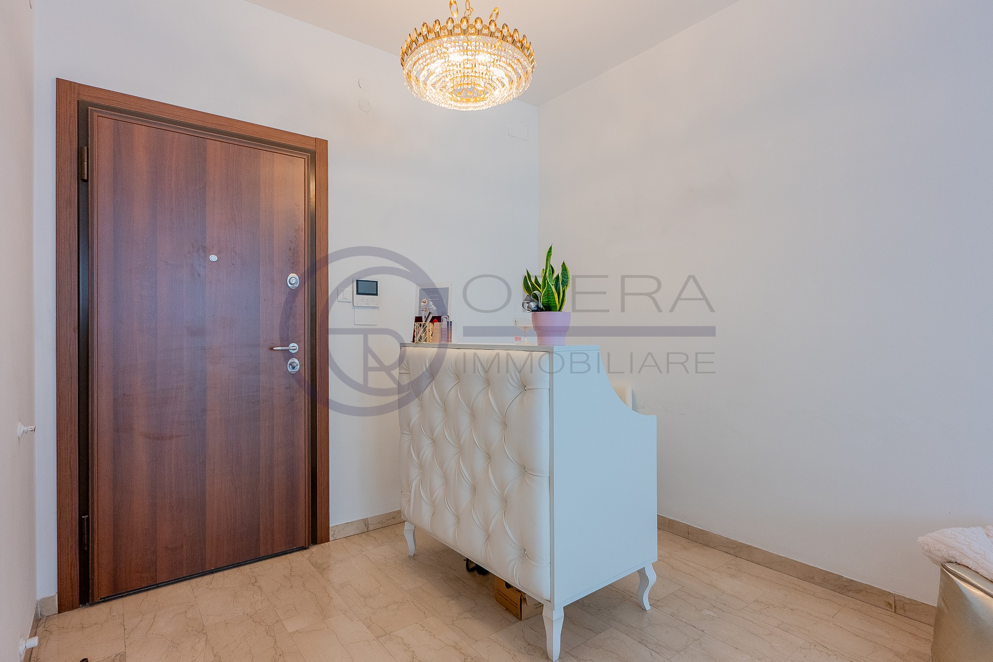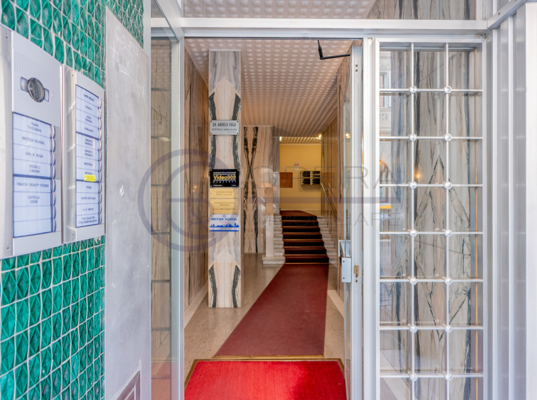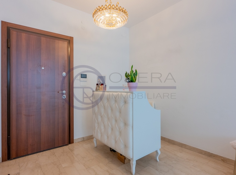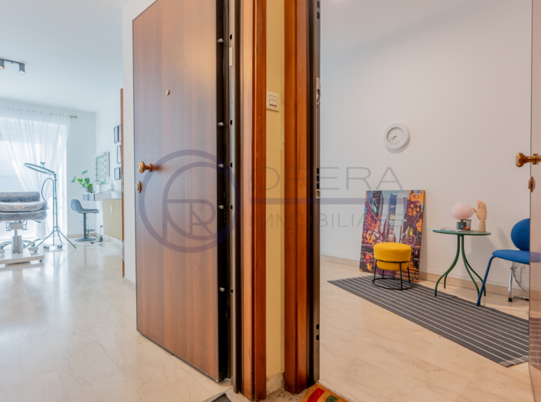 Infissi in alluminio vetrocamera in perfette condizioni di recente sostituzione, doppio ingresso con porte blindate e videocitofoni installati nel 2025.