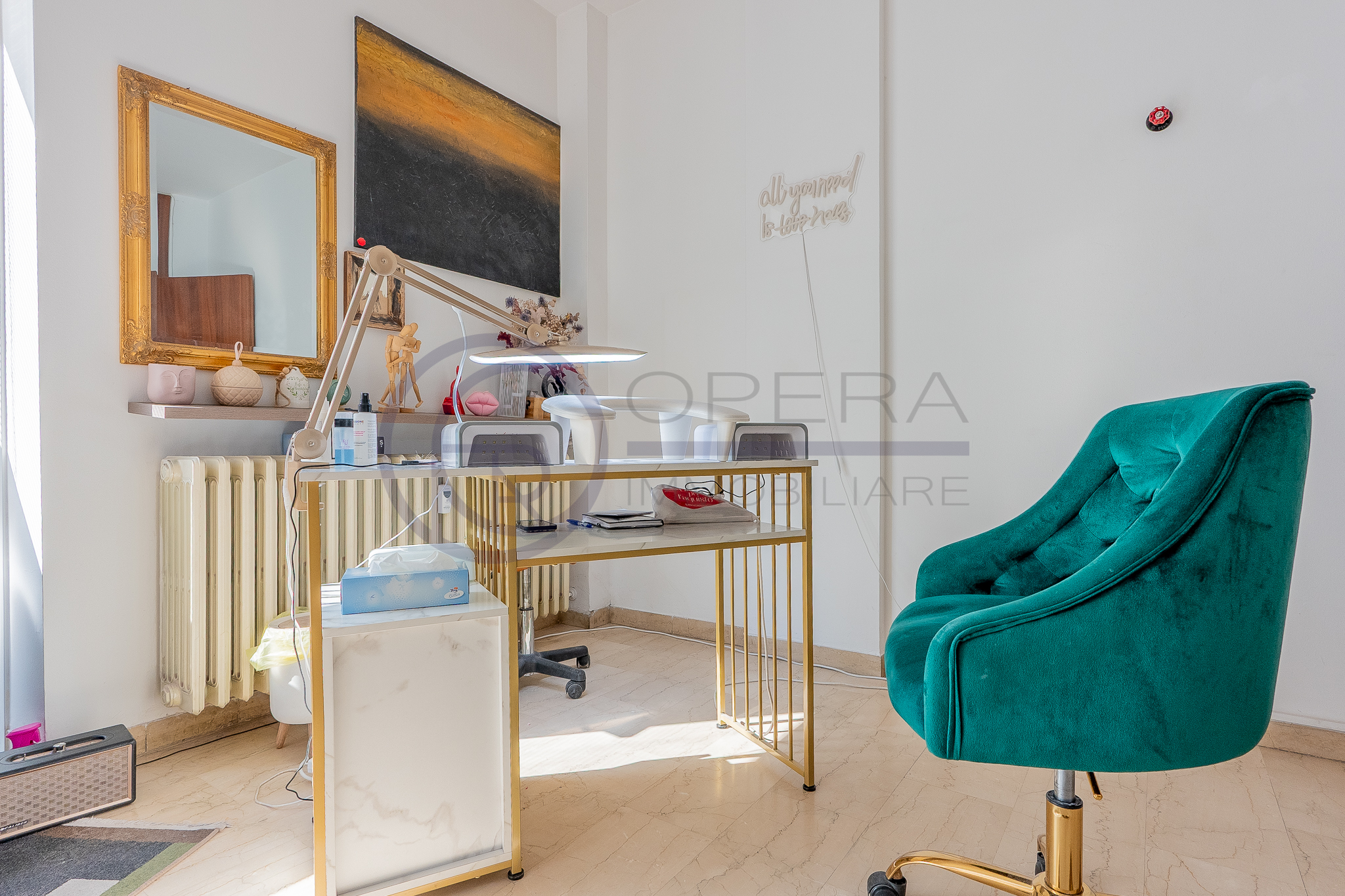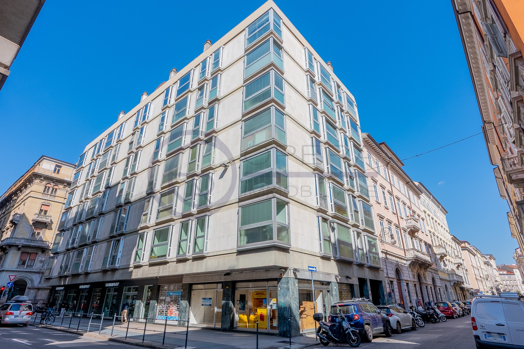L’ufficio dispone di due ampie stanze con entrata e videocitofono indipendente con esclusivamente il bagno finestrato in comune accedibile da una porta interna, il che lo rende estremamente funzionale anche per due attività diverse o eventualmente connesse all’occorenza. Attualmente affittato a due attività con contratto 6+6 al canone complessivo mensile di 800 € + 100 € spese, rendendolo un ottima soluzione di investimento difficile da reperire nel centro di Trieste.