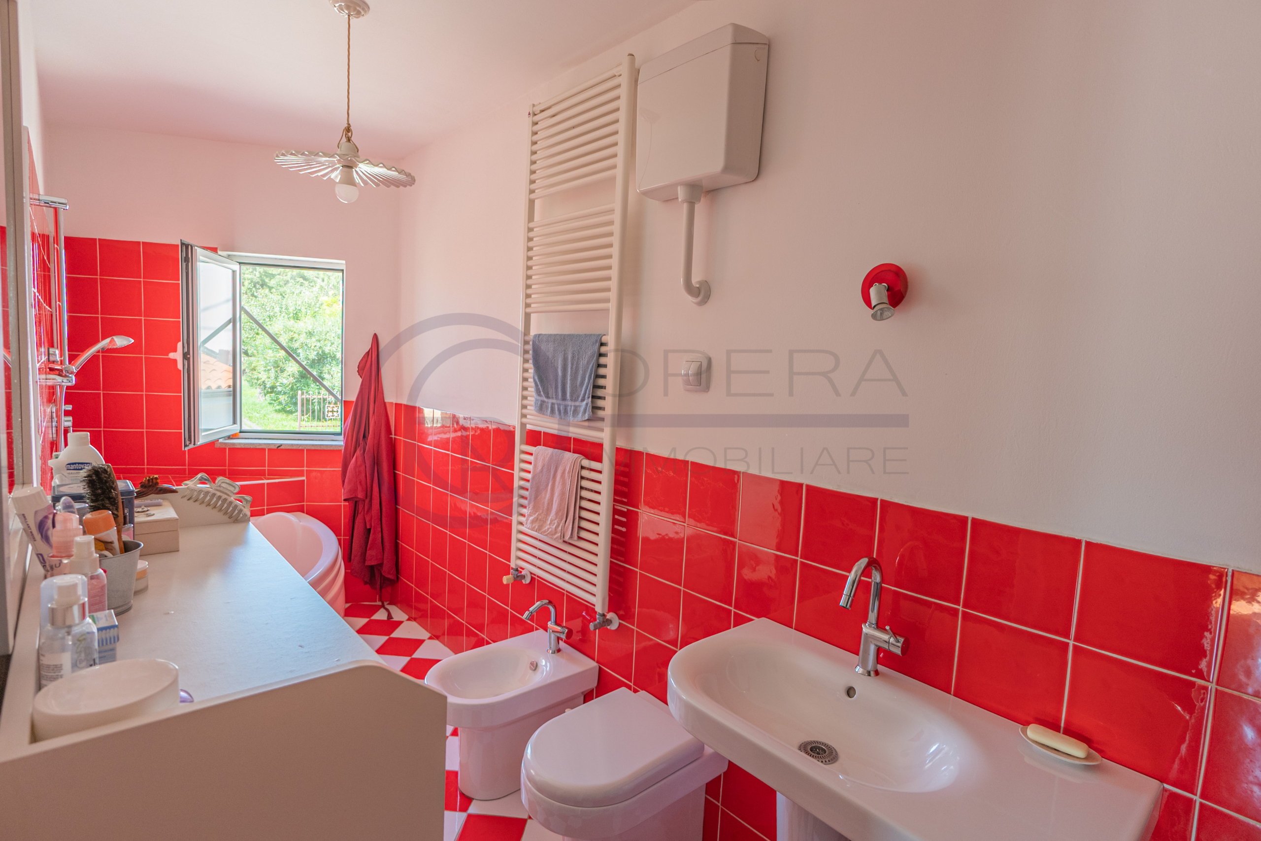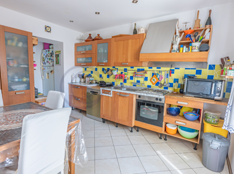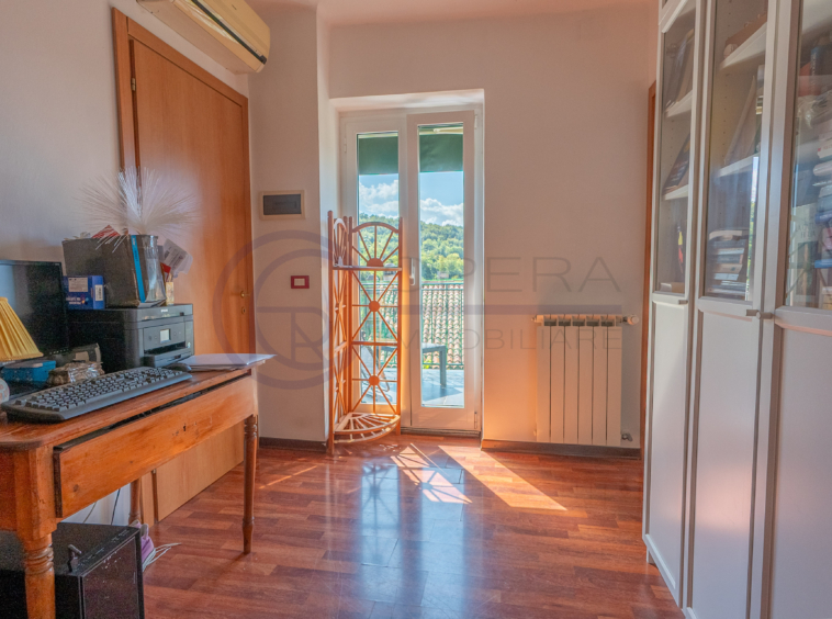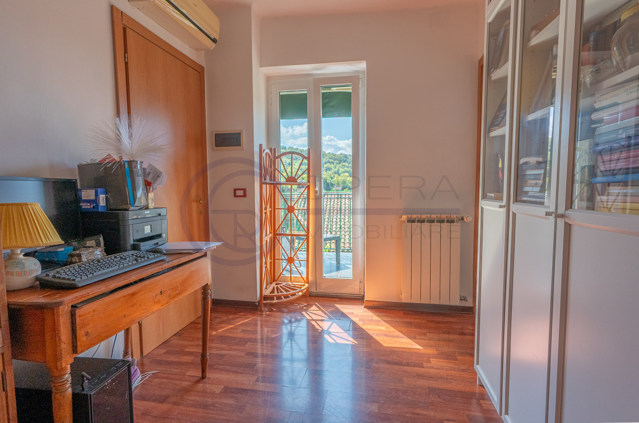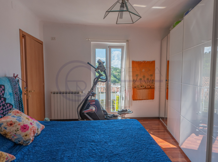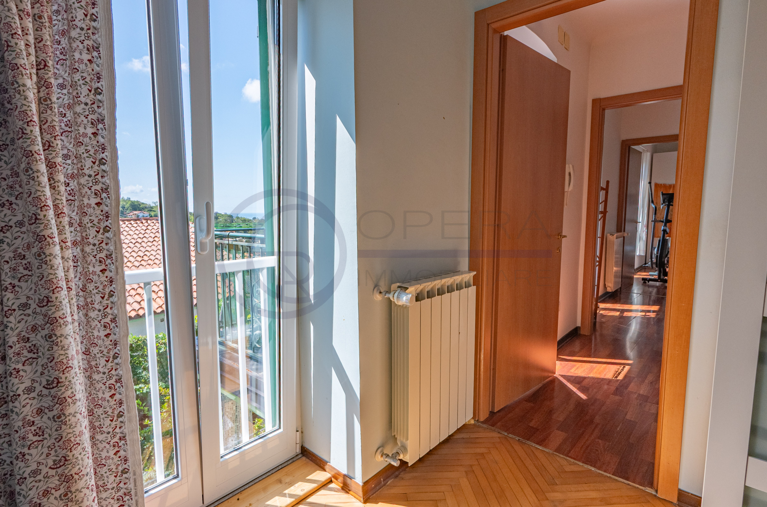 L’abitazione si sviluppa su due livelli. Al piano terra si trova una cucina abitabile spaziosa, un luminoso soggiorno con ampie finestre e una bella stufa a pellet, oltre a un bagno completo finestrato con box doccia. Al primo piano, una prima stanza adibita a studio, con accesso al terrazzo abitabile da cui si gode una piacevole vista mare, un ampio bagno finestrato con vasca e due accoglienti camere matrimoniali.