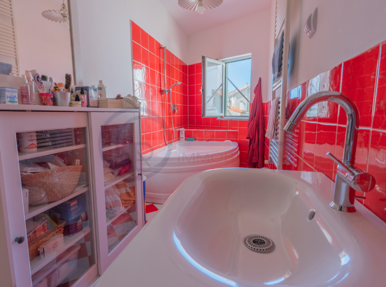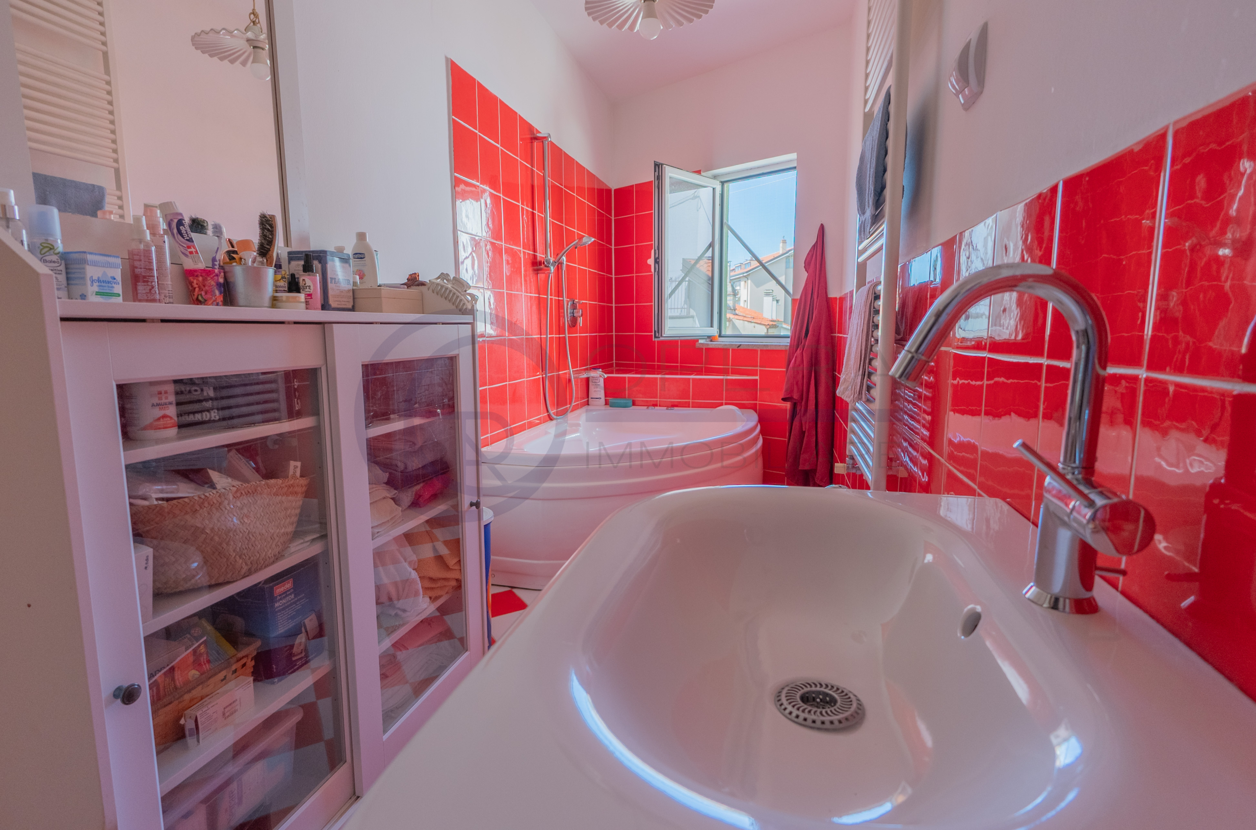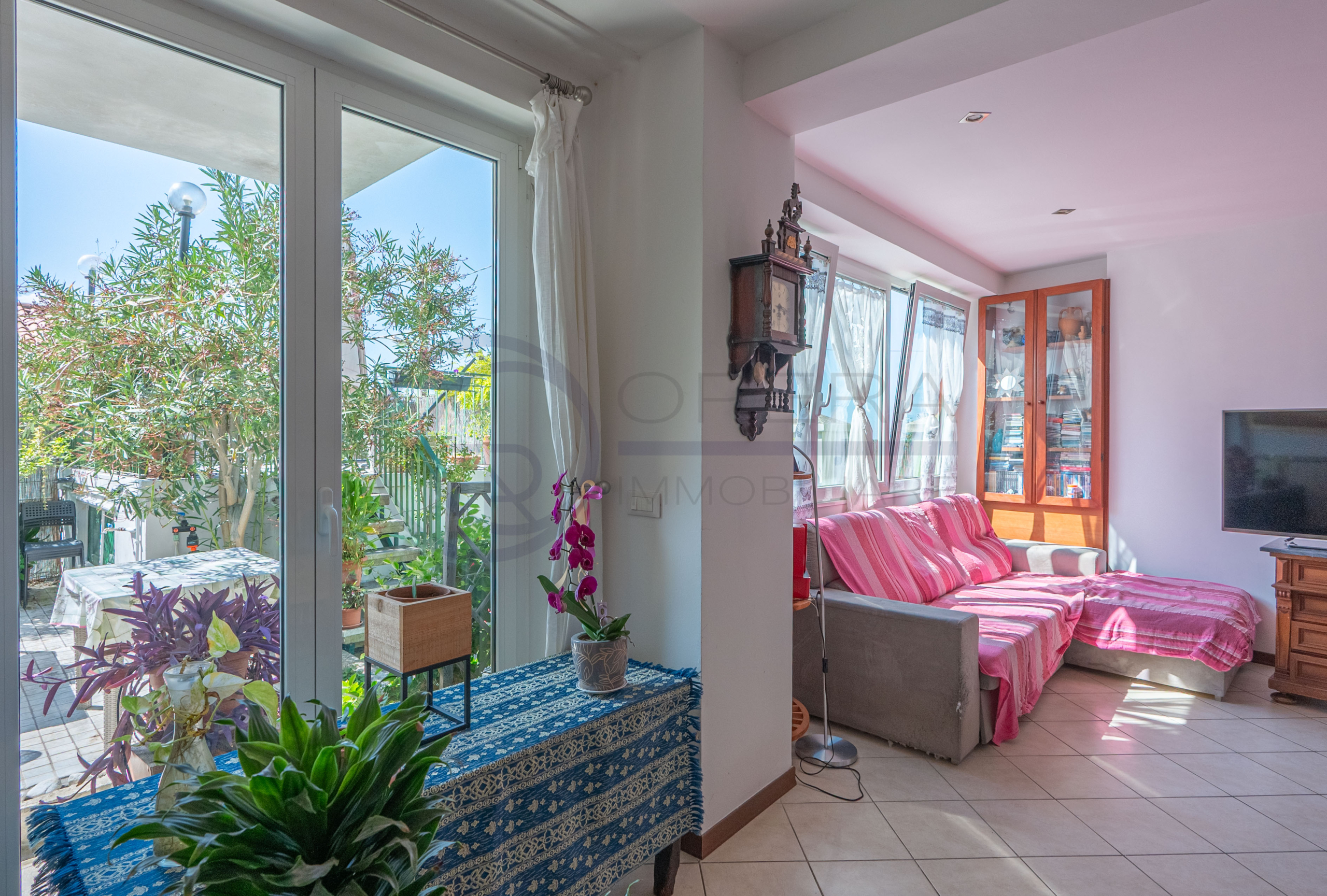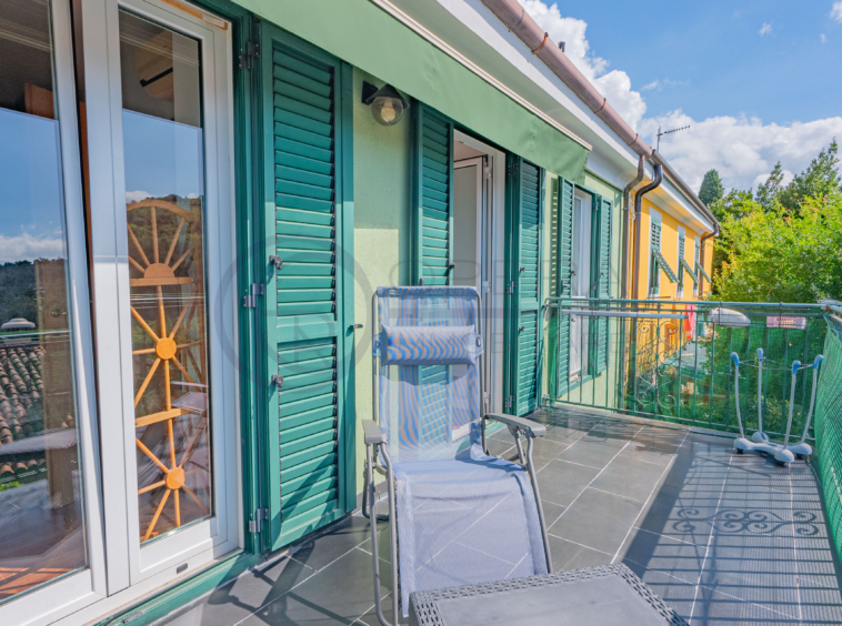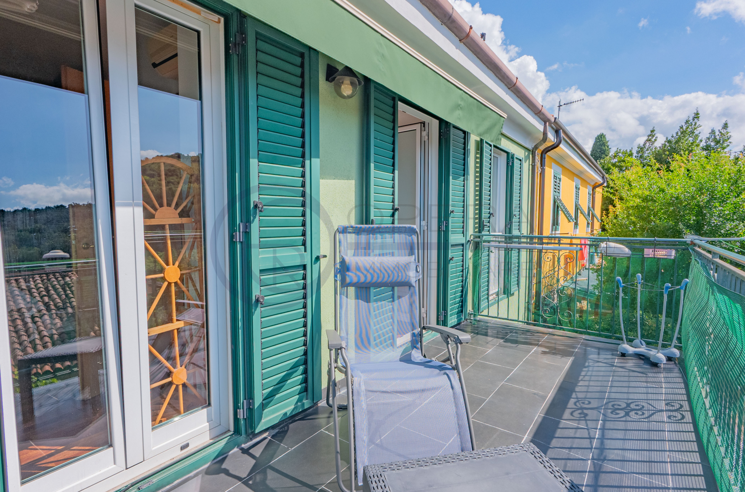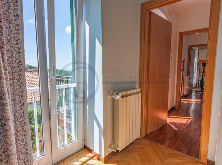 L’abitazione si sviluppa su due livelli. Al piano terra si trova una cucina abitabile spaziosa, un luminoso soggiorno con ampie finestre e una bella stufa a pellet, oltre a un bagno completo finestrato con box doccia. Al primo piano, una prima stanza adibita a studio, con accesso al terrazzo abitabile da cui si gode una piacevole vista mare, un ampio bagno finestrato con vasca e due accoglienti camere matrimoniali.