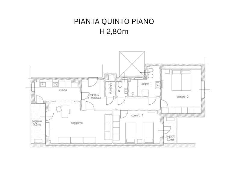 Composizione: ingresso, ampio soggiorno con balcone, cucina a vista, camera matrimoniale con accesso al secondo balcone, ulteriori camera matrimoniale, bagno completo, secondo bagno con wc e lavabo, ripostiglio, ampia soffitta.