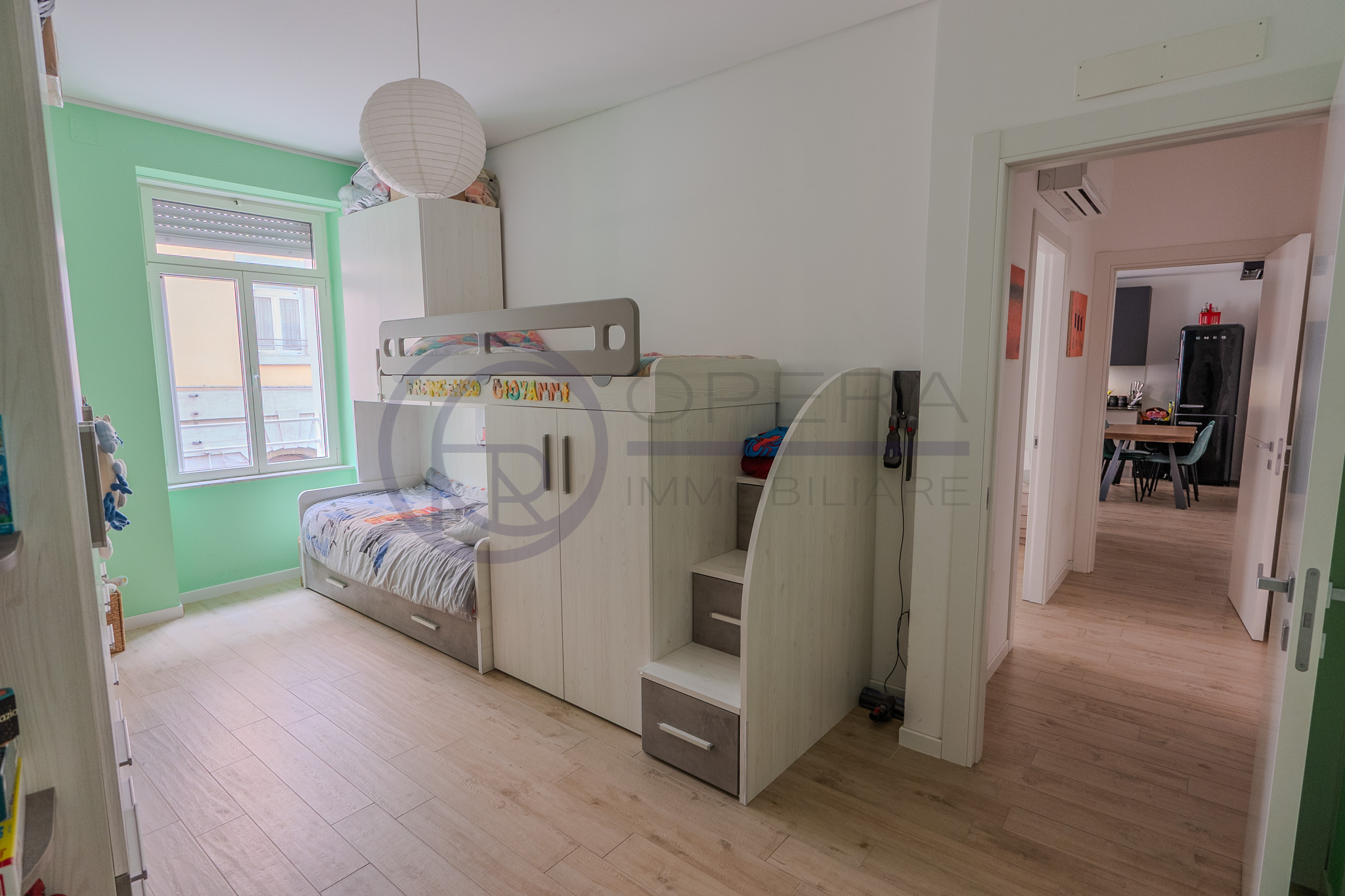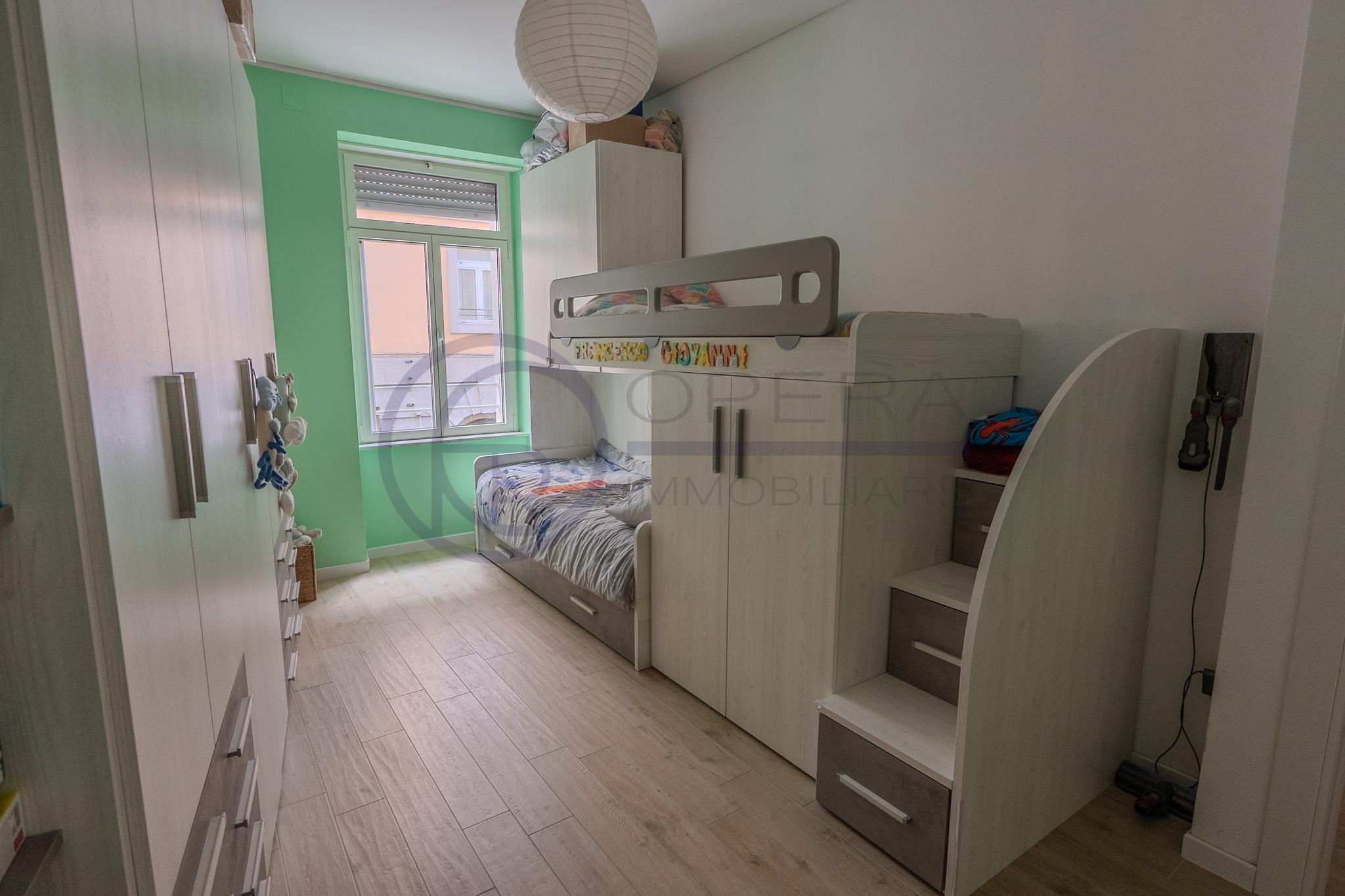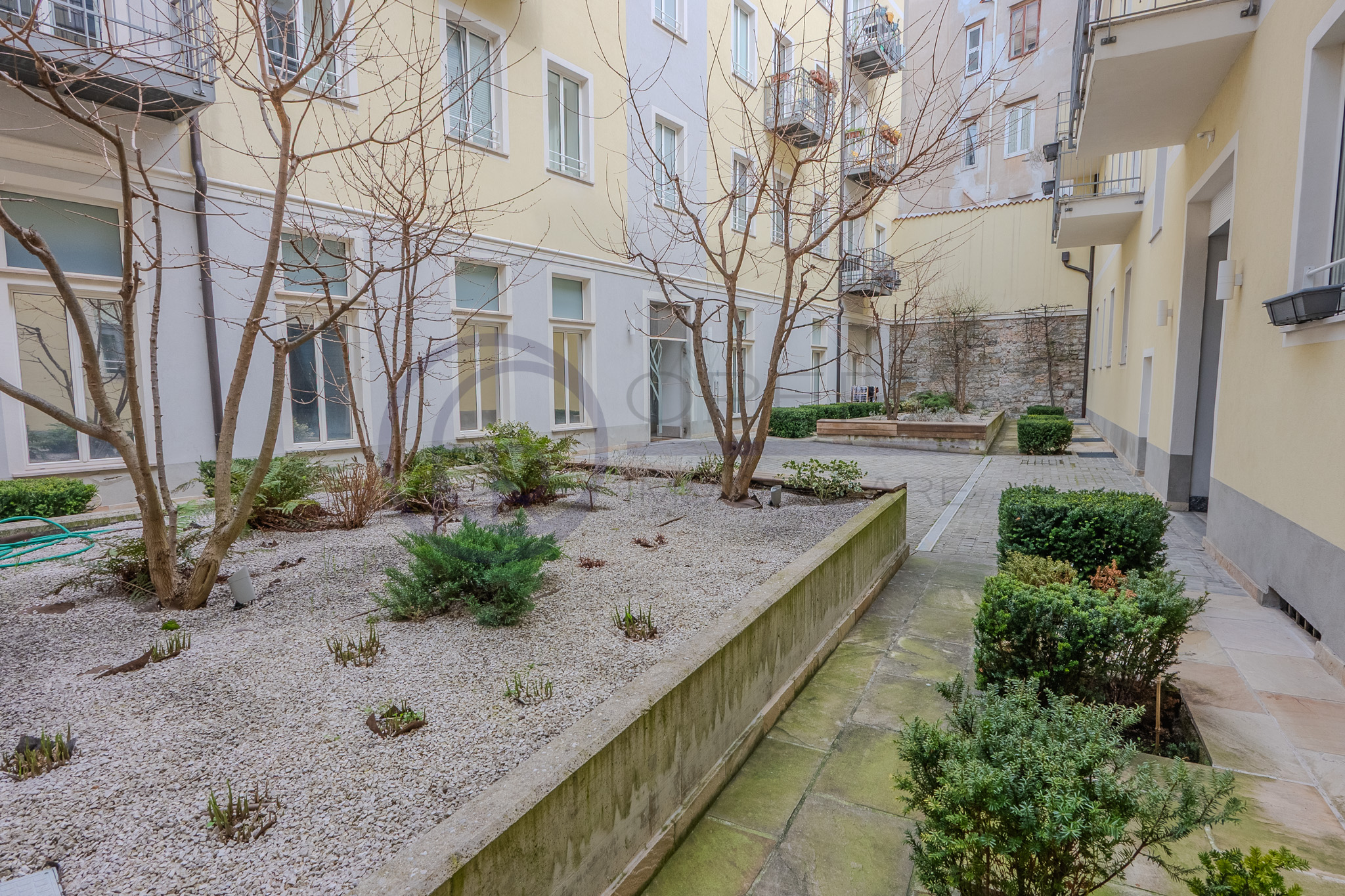 Nel cuore di una zona ricca di servizi, a due passi dal giardino pubblico, questo appartamento in elegante palazzo d’epoca gode di ascensore e un ampio giardino condominiale curato, con area dedicata al parcheggio biciclette.