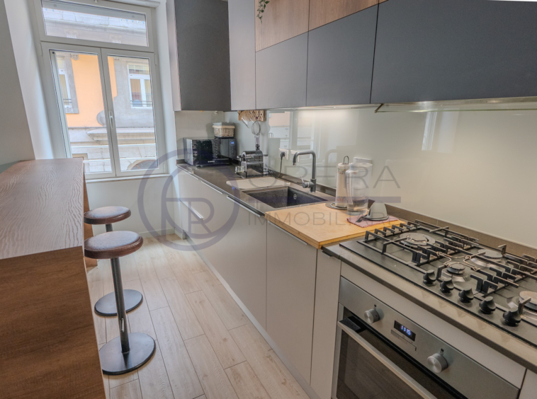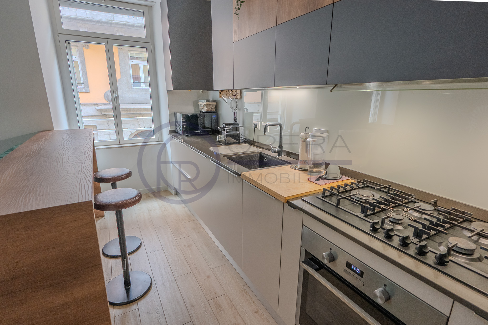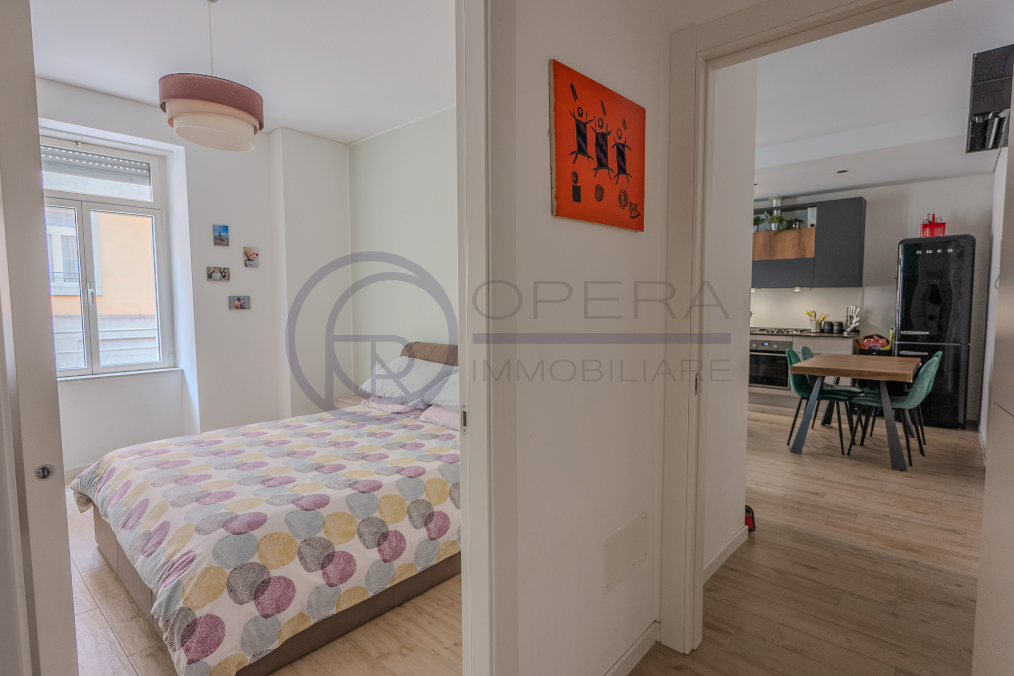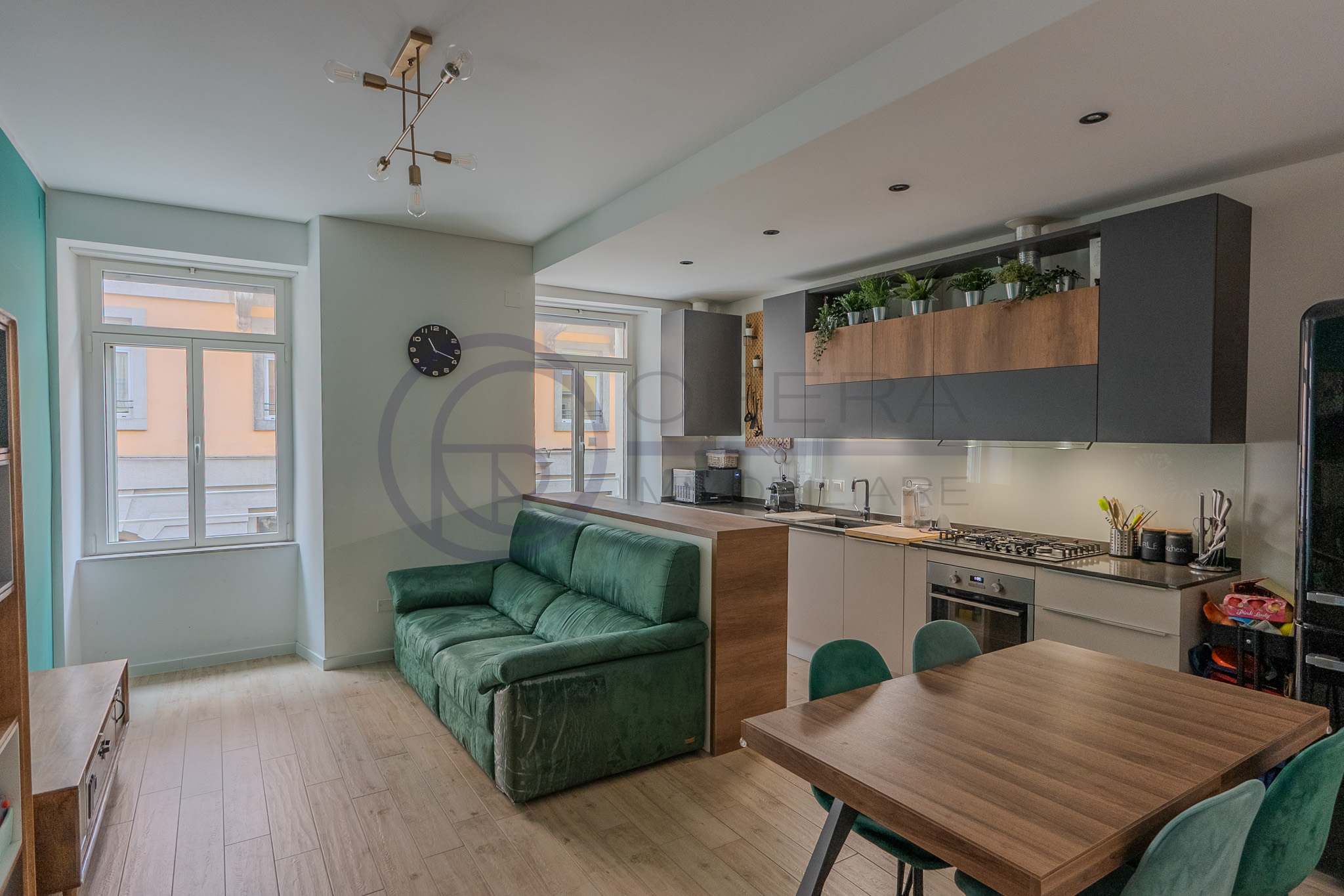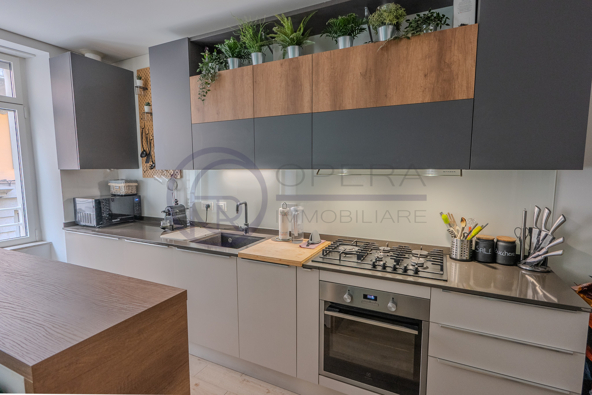Ristrutturato di recente con maestria, offre interni luminosi e funzionali: generosa zona giorno con cucina Scavolini completa di arredi, due camere matrimoniali, bagno completo con ampio box doccia, zona lavanderia e comoda cantina.