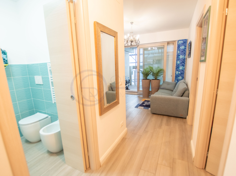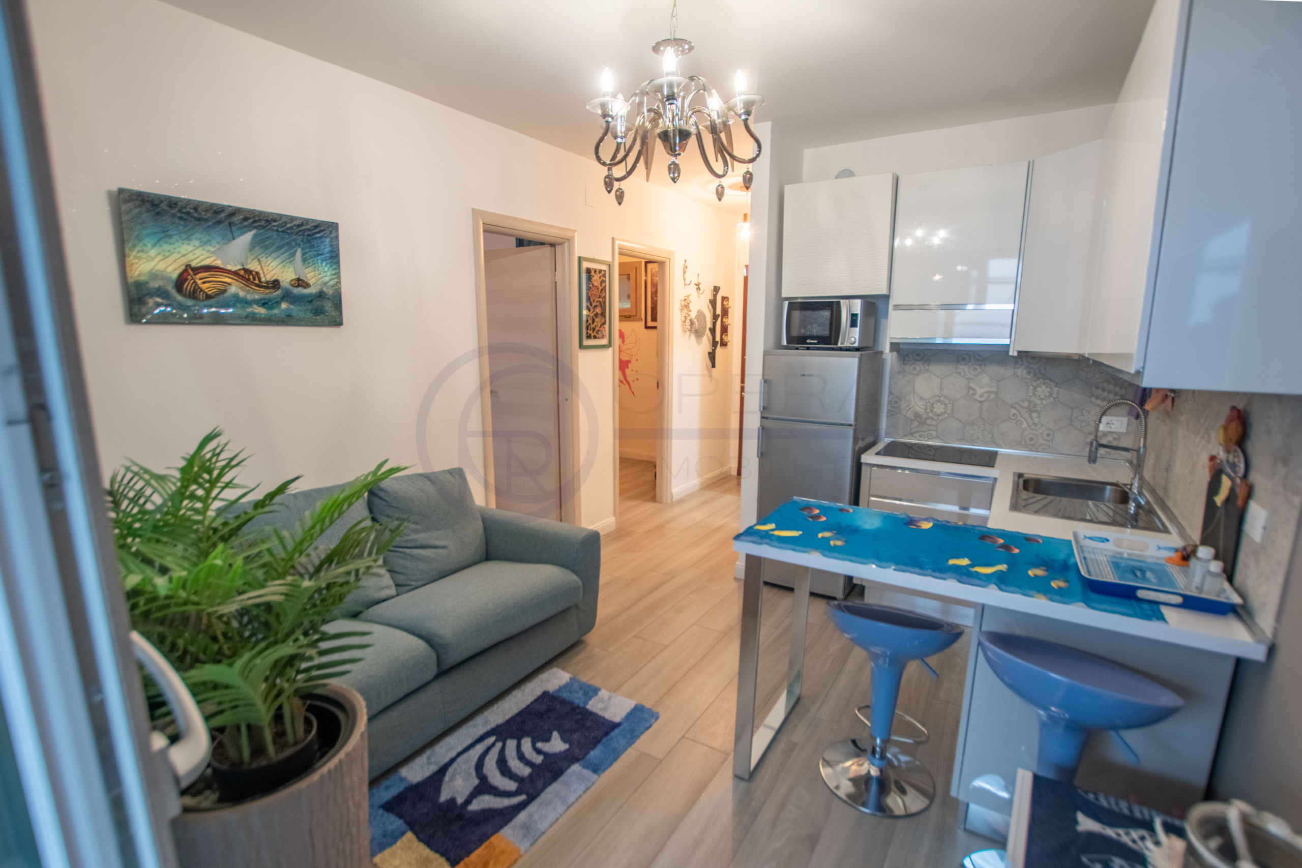 Si tratta di un trilocale accessoriato con terrazzo abitabile di circa 20 mq con vista mare mozzafiato, ideale per momenti di relax e convivialità. L’appartamento è composto da una luminosa zona giorno con cucina a vista che si apre direttamente sul terrazzo, una spaziosa camera matrimoniale, una camera singola e un bagno completo. Completa la proprietà una comoda cantina.