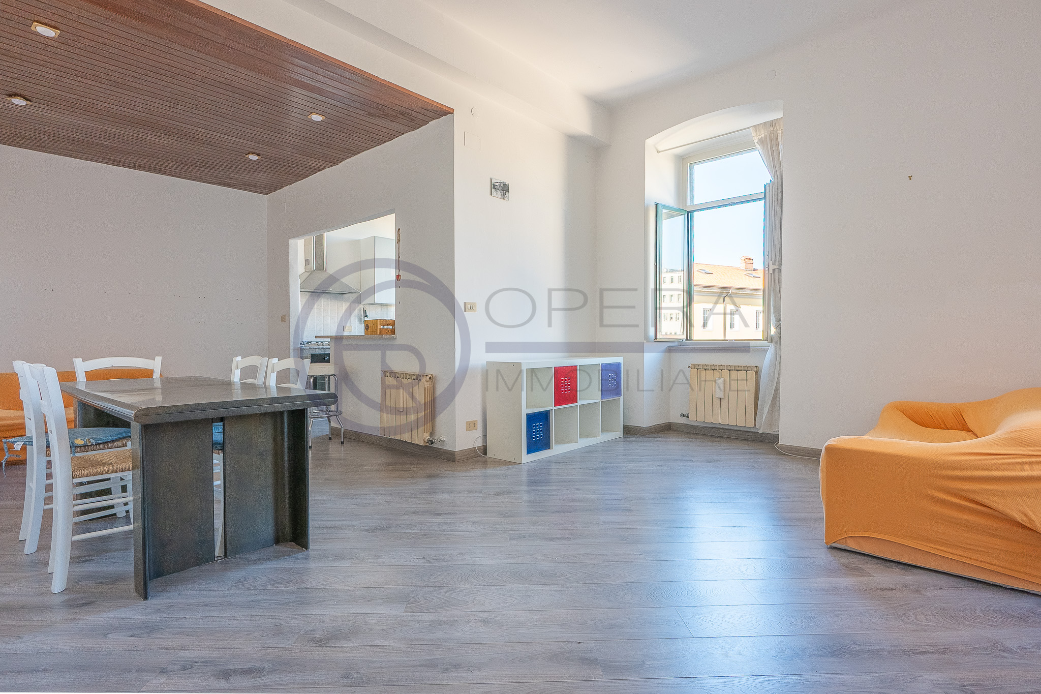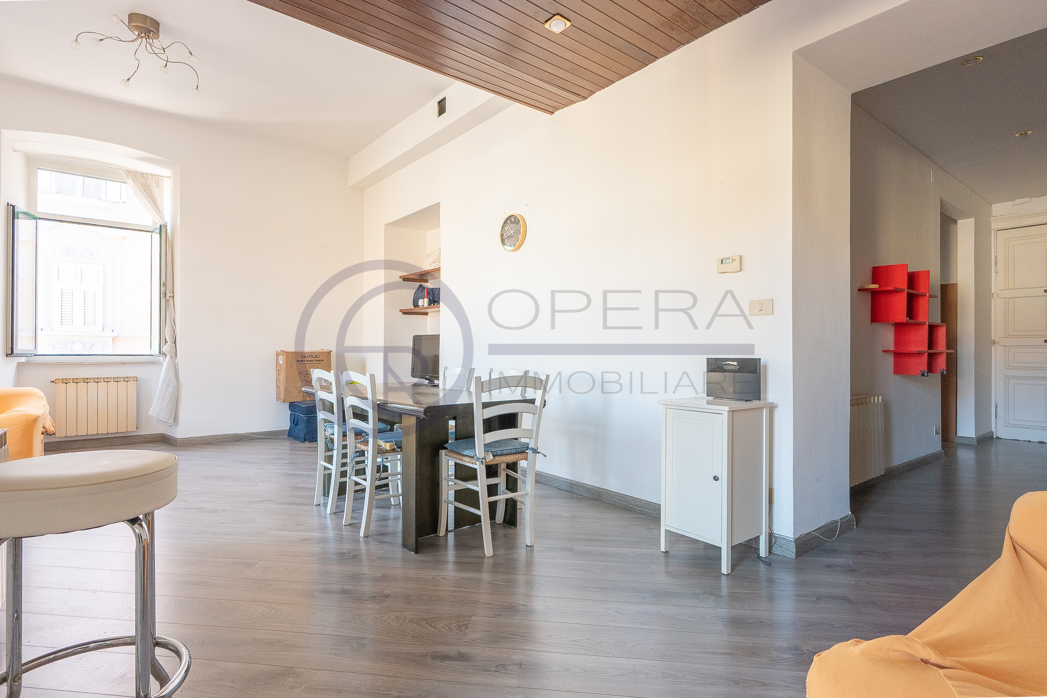 La zona giorno è il vero protagonista di questo immobile: un ambiente open space con cucina a vista che gode di una doppia esposizione ad angolo, regalando un’eccezionale luminosità per tutto il giorno e creando una piacevole sensazione di ampiezza e ariosità. Le grandi altezze dei soffitti contribuiscono a valorizzare lo spazio, rendendolo particolarmente accogliente.