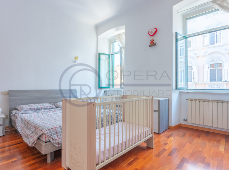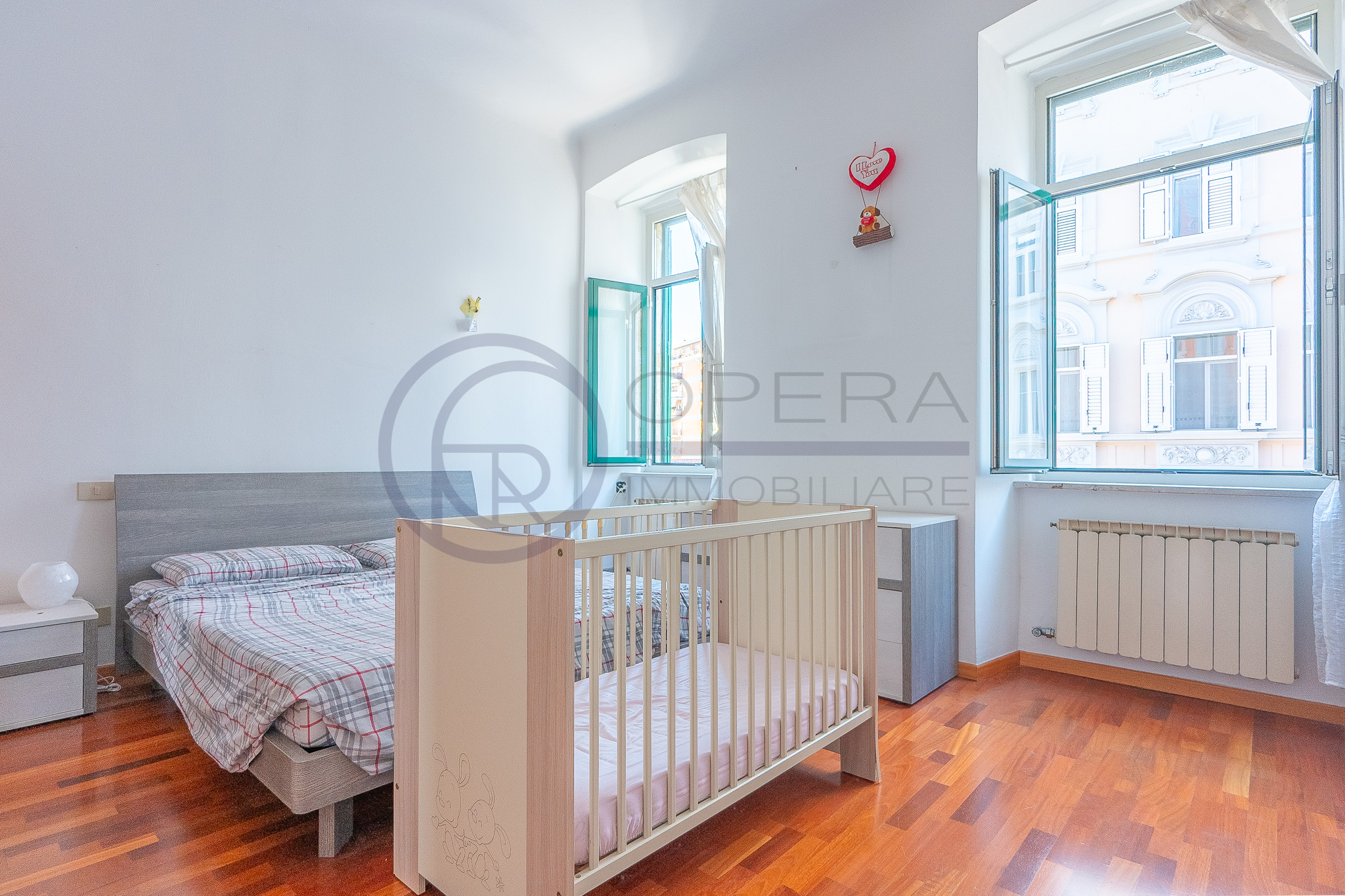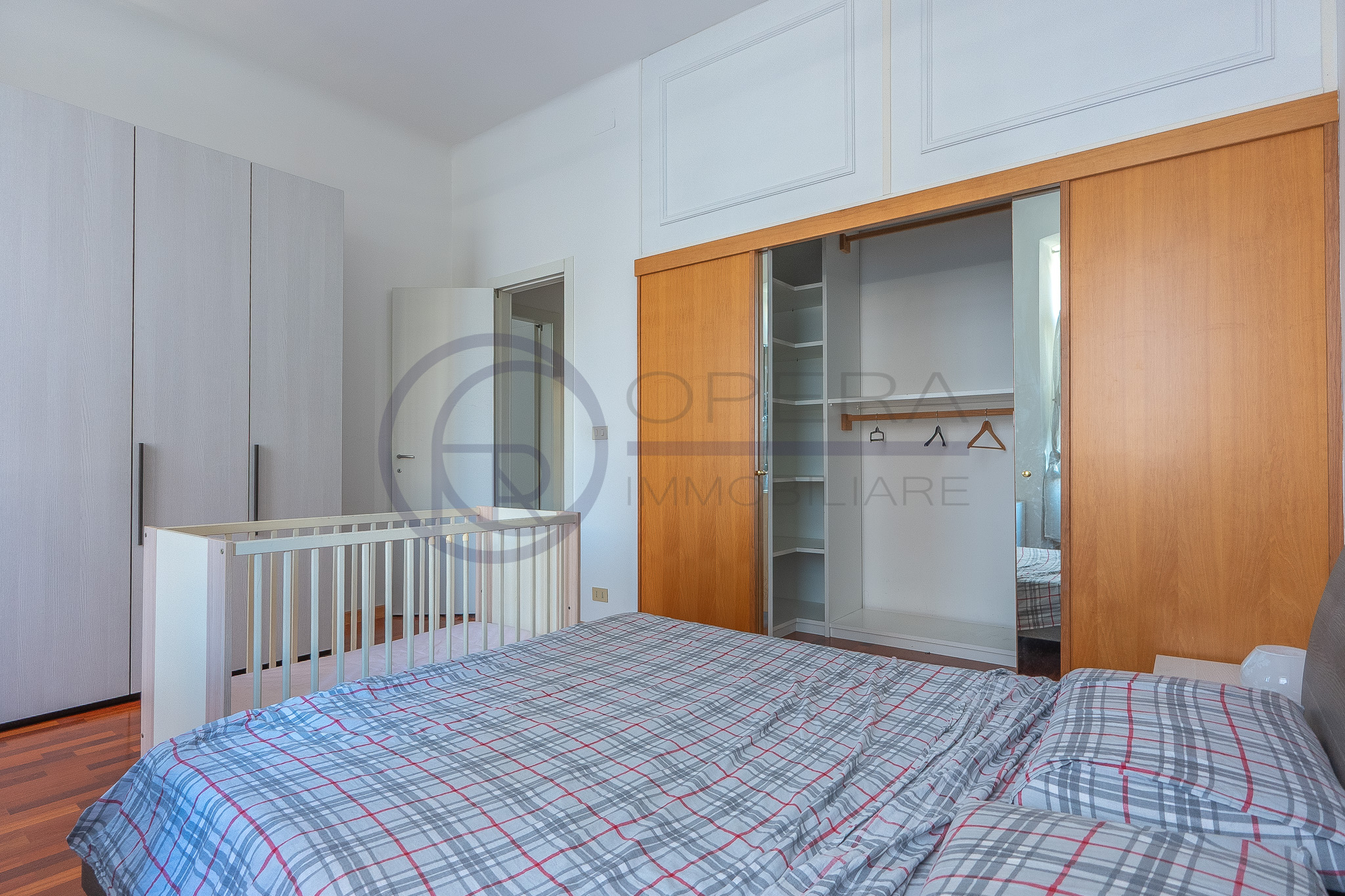 La zona notte è composta da una spaziosa camera matrimoniale dotata di cabina armadio funzionale, una seconda camera da letto e un bagno completo finestrato con box doccia.