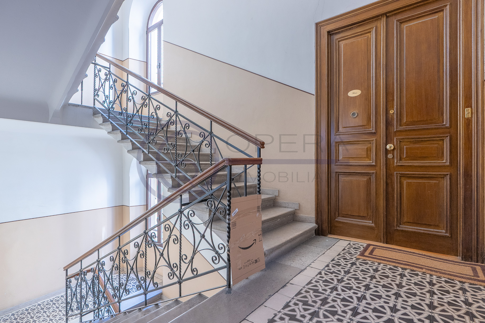 L’alloggio si trova al terzo piano di una palazzina d’epoca risalente al 1900, senza ascensore, con facciate appena restaurate, che ne valorizzano il fascino storico.