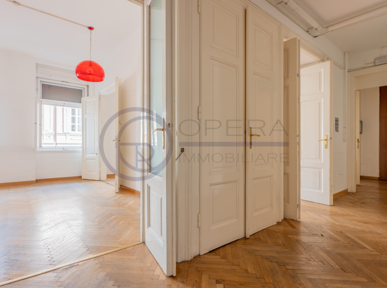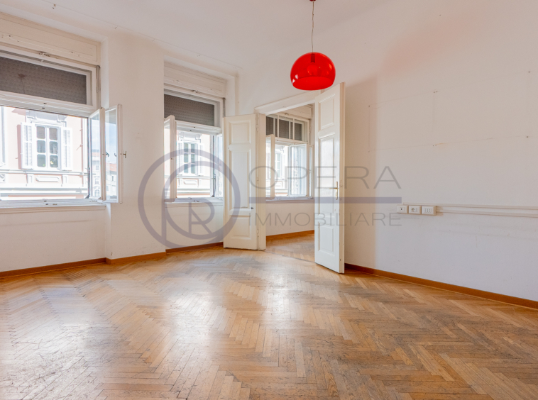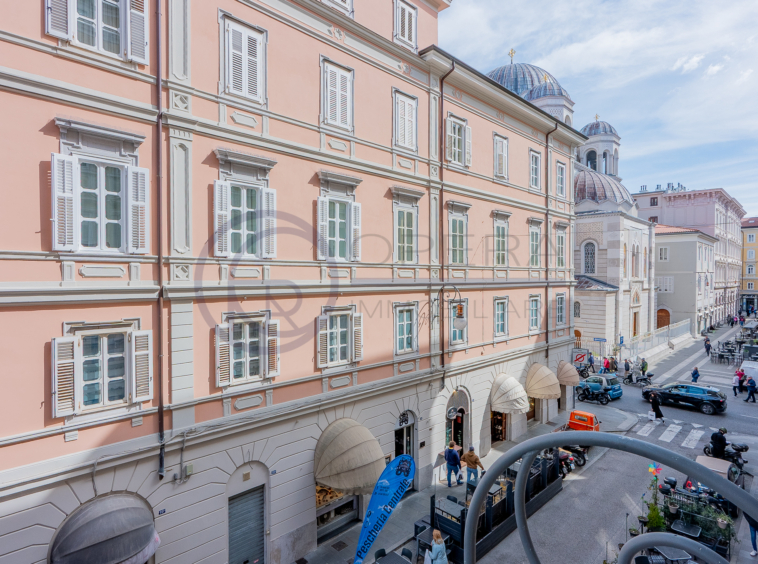 Nel cuore vibrante di Trieste, affacciato sull’incantevole Piazza Ponterosso, raffinato e versatile quadrilocale sia come elegante abitazione sia come funzionale ufficio professionale.