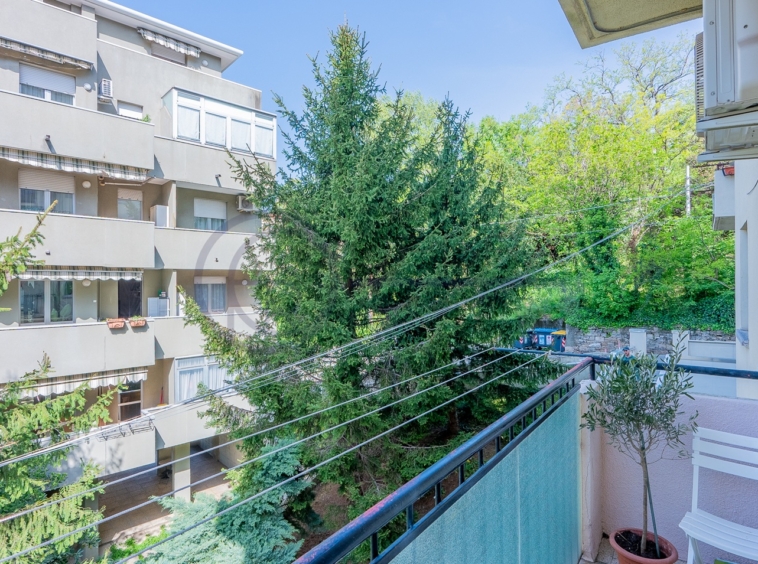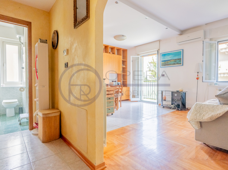 In zona tranquilla e defilata dal traffico, bilocale arredato con terrazzo sito al primo piano di stabile senza ascensore.