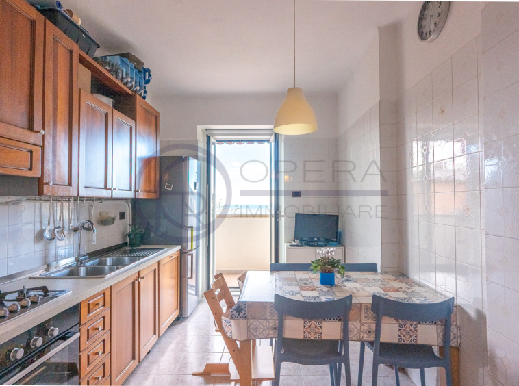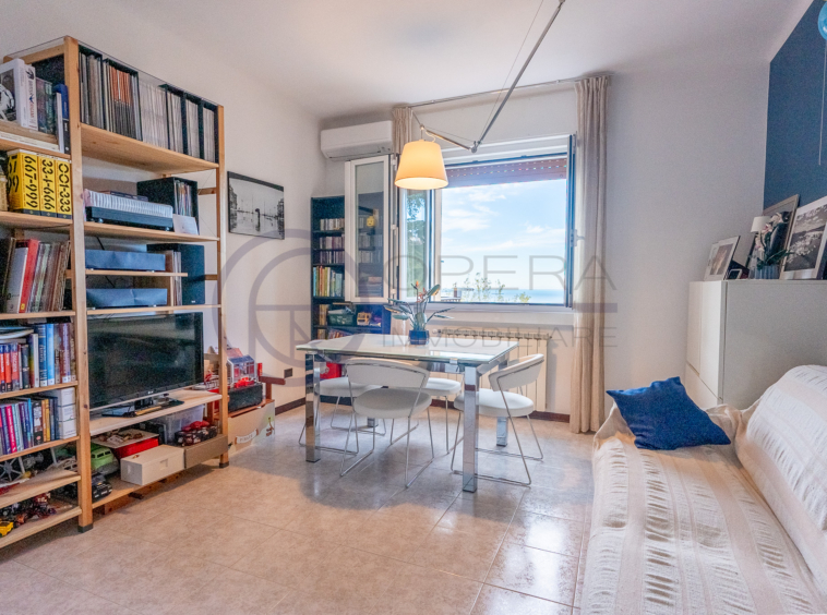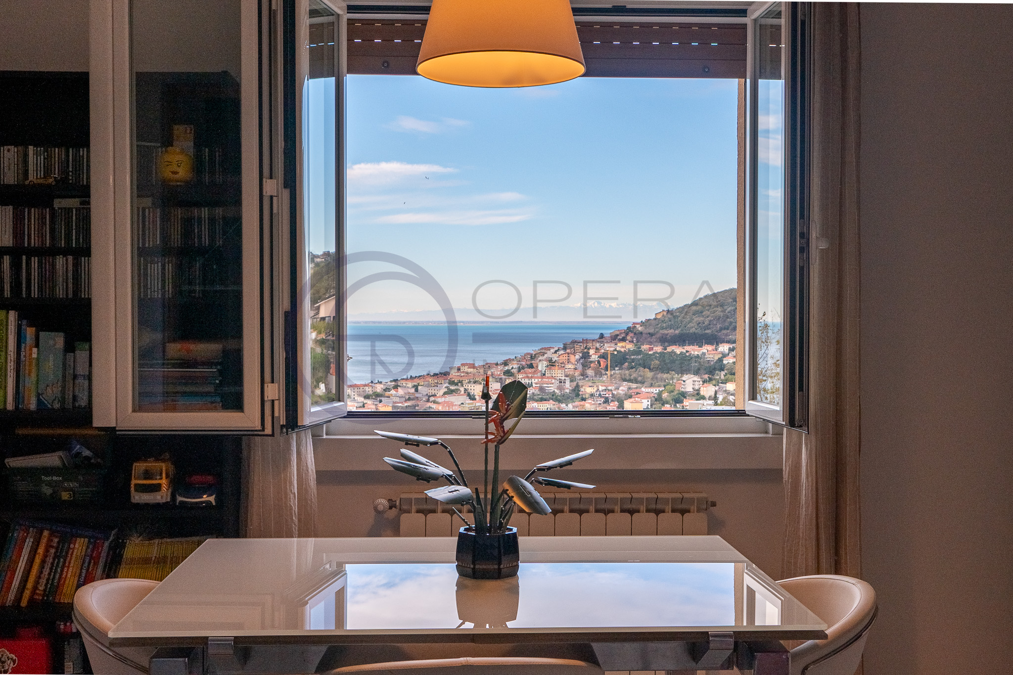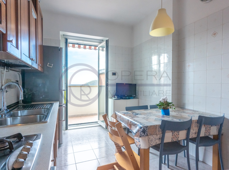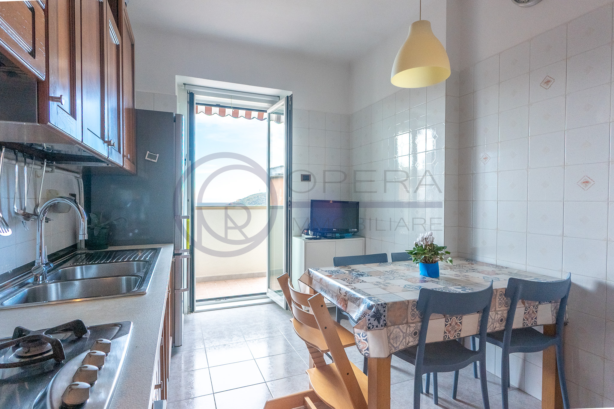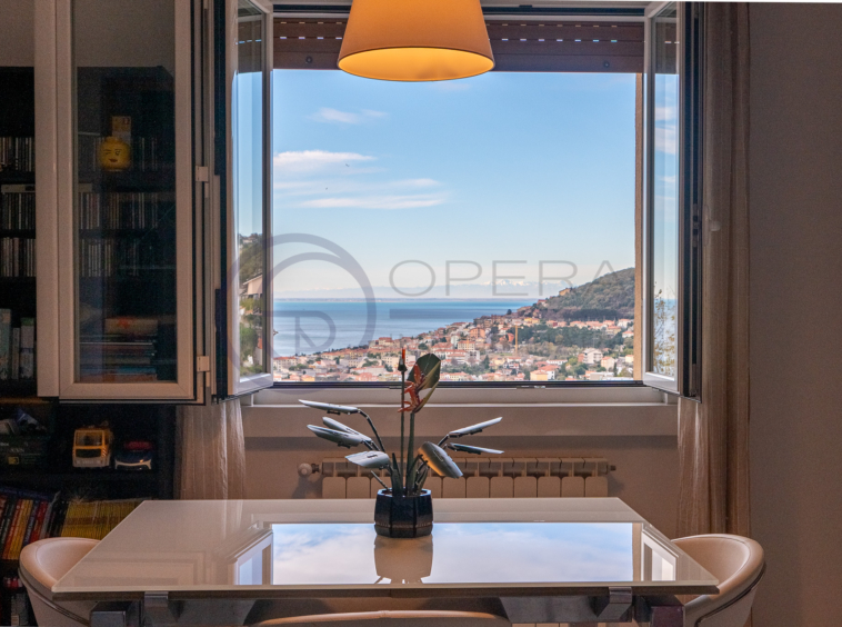 All’interno, troviamo un atrio d’ingresso, cucina abitabile con mobilio su misura e accessoriata da tutti gli elettrodomestici con uscita diretta al terrazzino con splendida vista mare, luminoso soggiorno con vano adibito a cameretta temporanea, camera matrimoniale con ampia armadiatura e affaccio nel verde, bagno completo finestrato con vasca e cantina al piano terra.