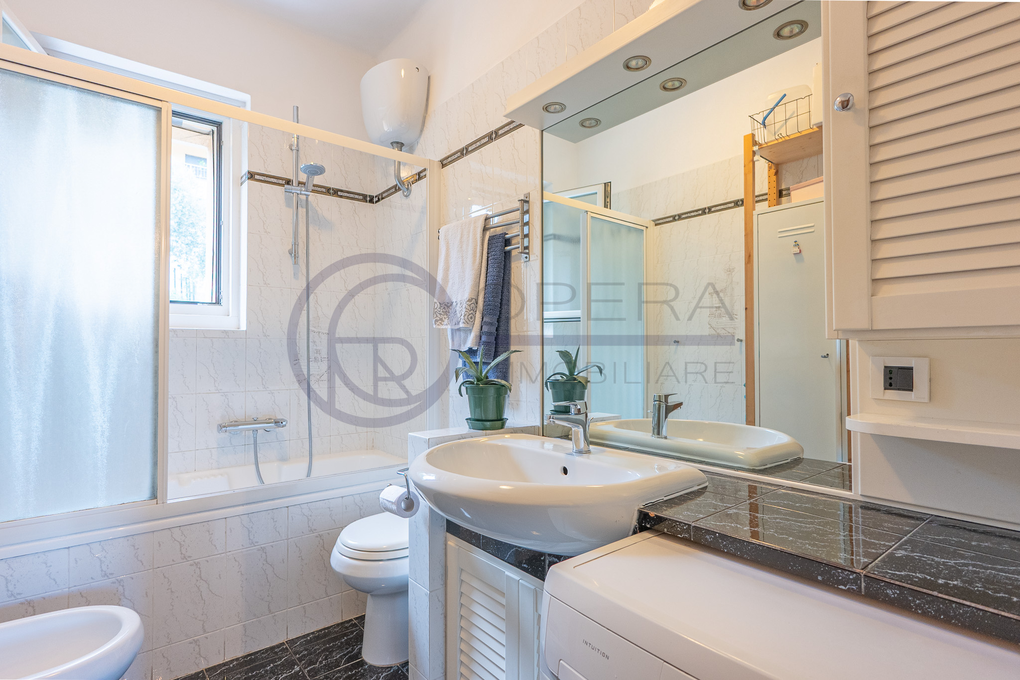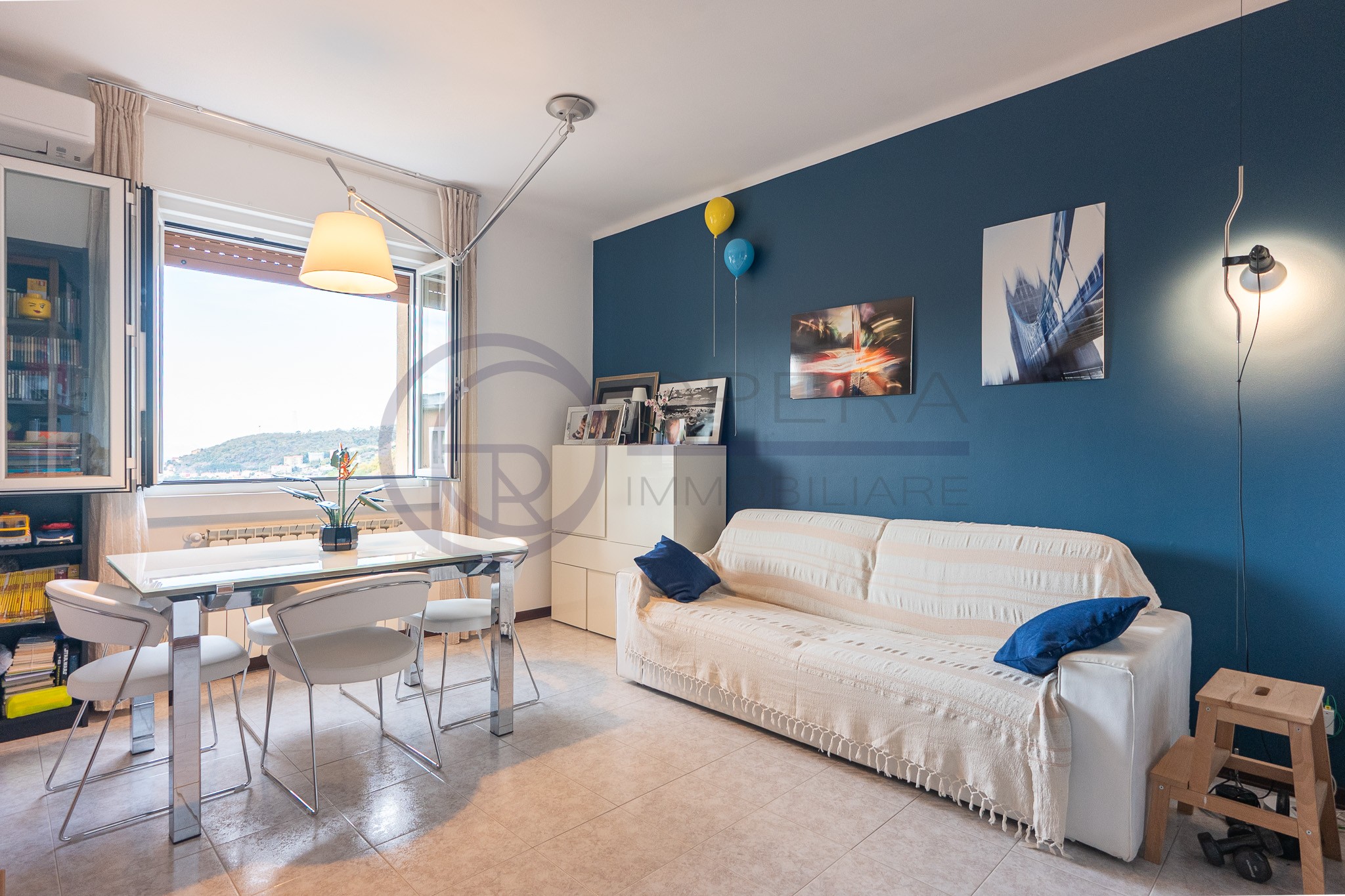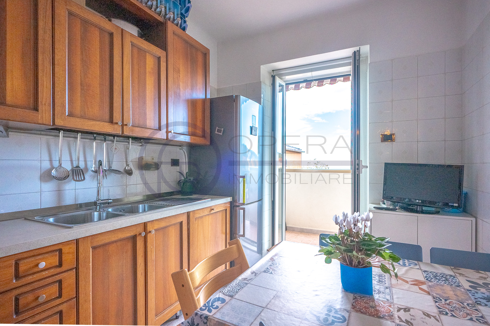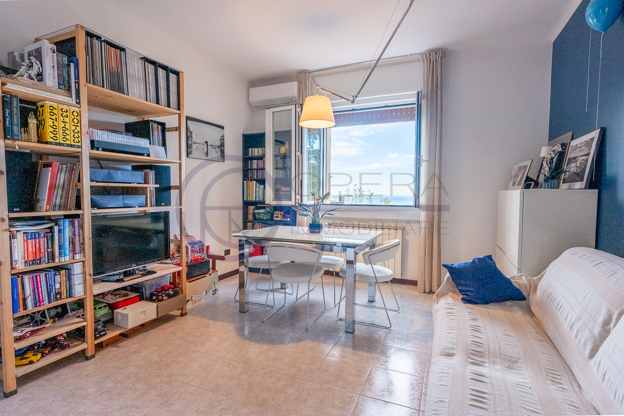 All’interno, troviamo un atrio d’ingresso, cucina abitabile con mobilio su misura e accessoriata da tutti gli elettrodomestici con uscita diretta al terrazzino con splendida vista mare, luminoso soggiorno con vano adibito a cameretta temporanea, camera matrimoniale con ampia armadiatura e affaccio nel verde, bagno completo finestrato con vasca e cantina al piano terra.