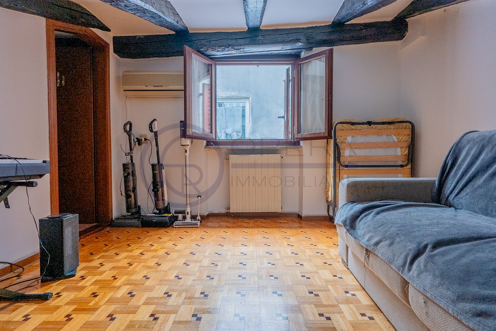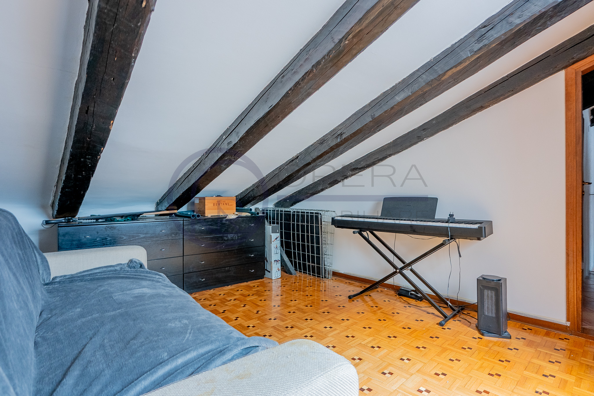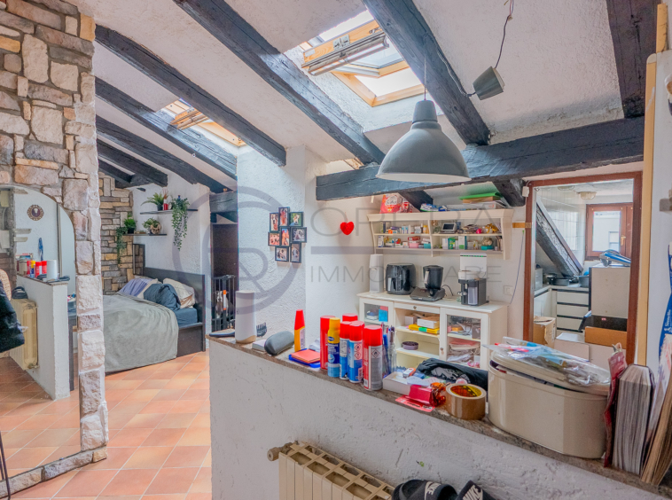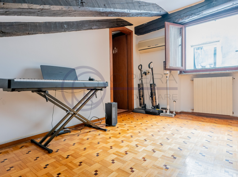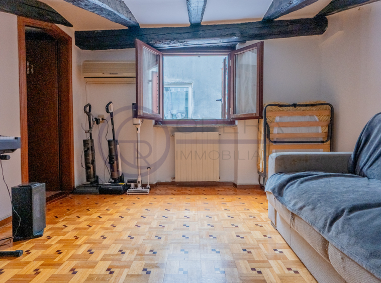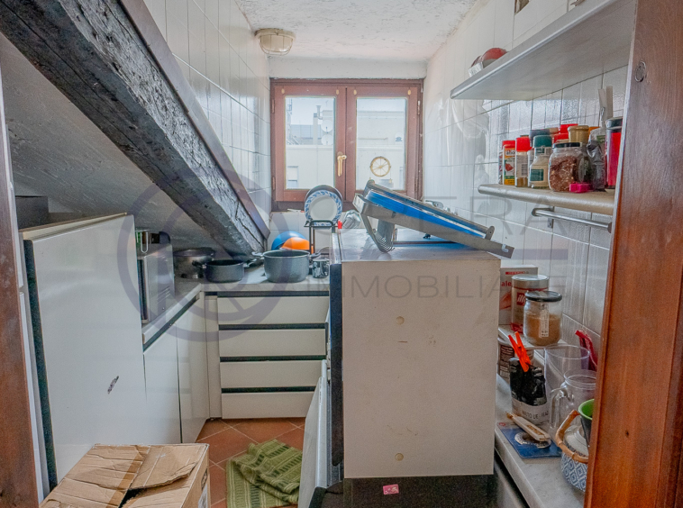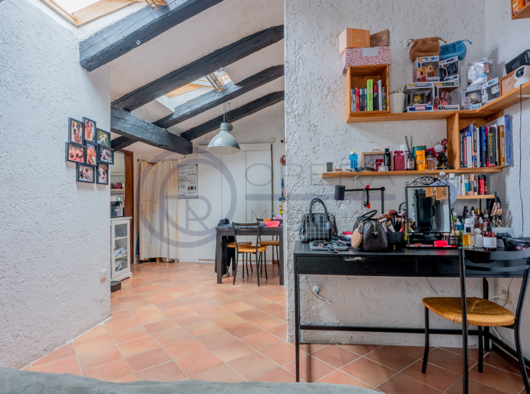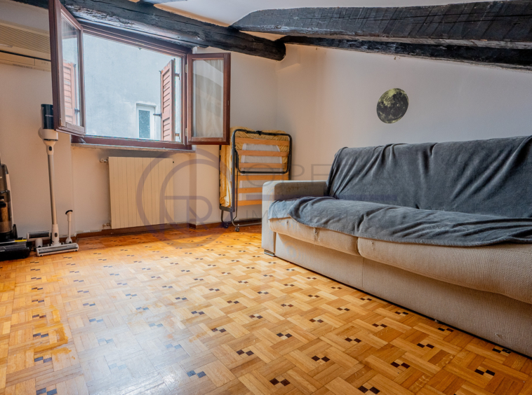 In zona centrale, fornita da mezzi pubblici e dai principali servizi, luminosa mansarda sita al quinto piano di stabile fine ’800 senza ascensore.