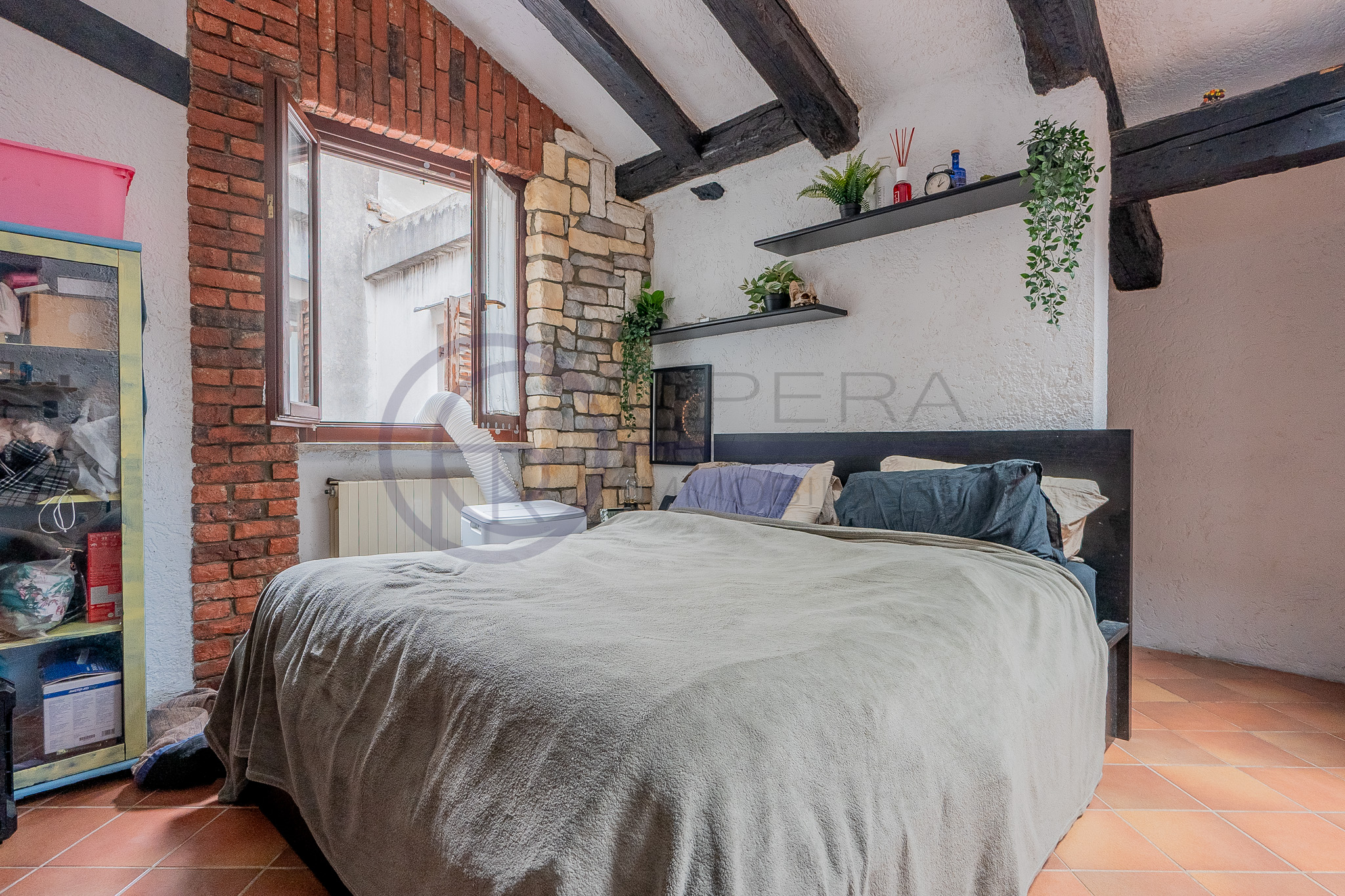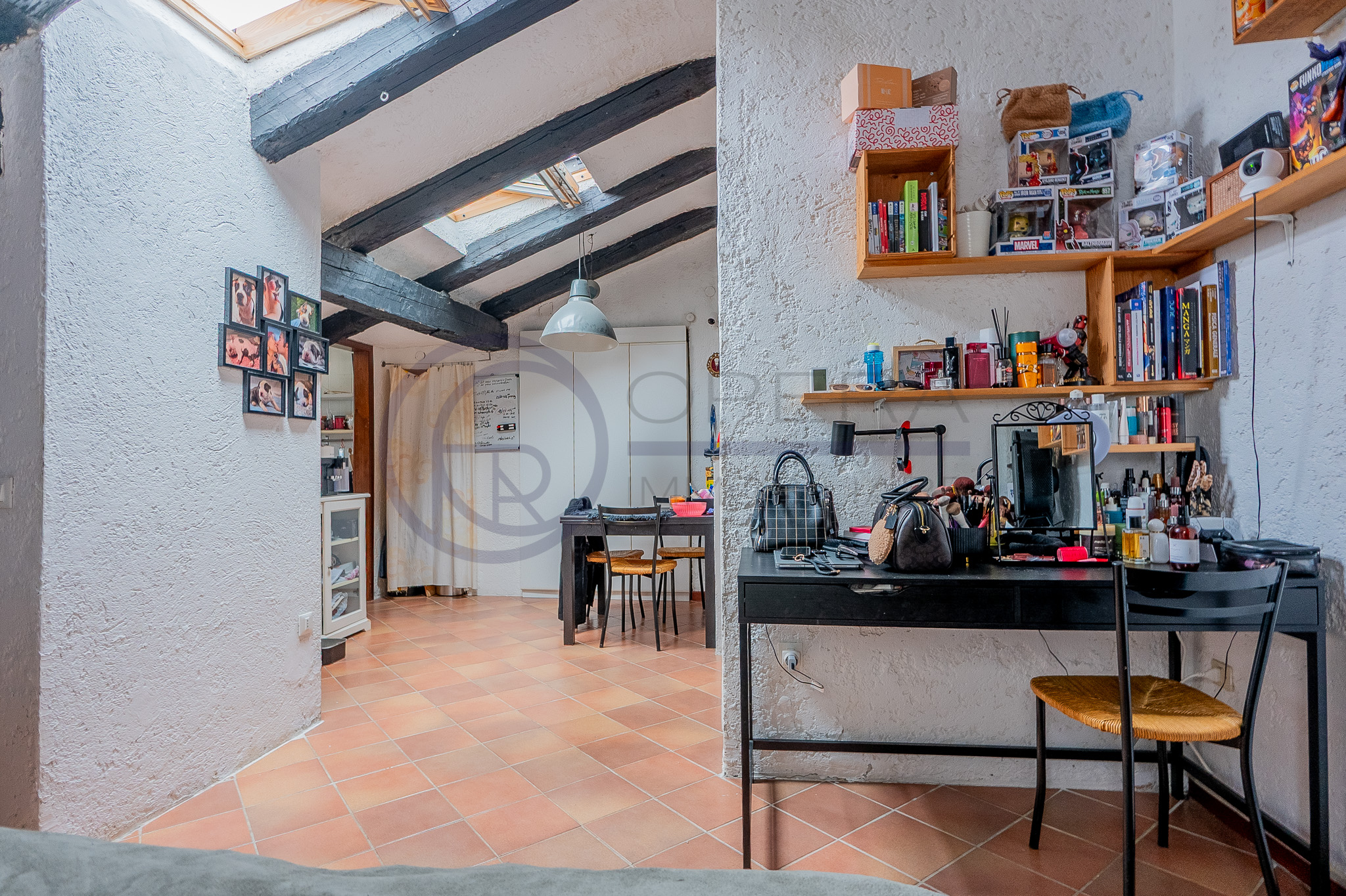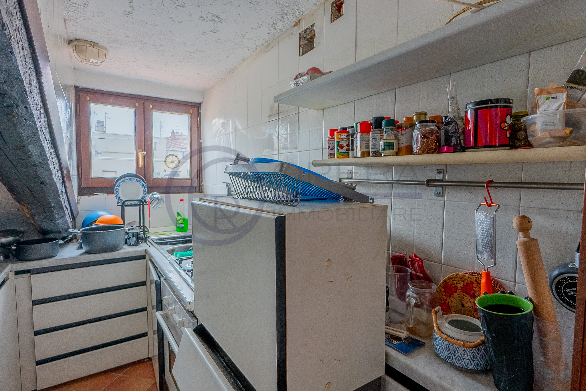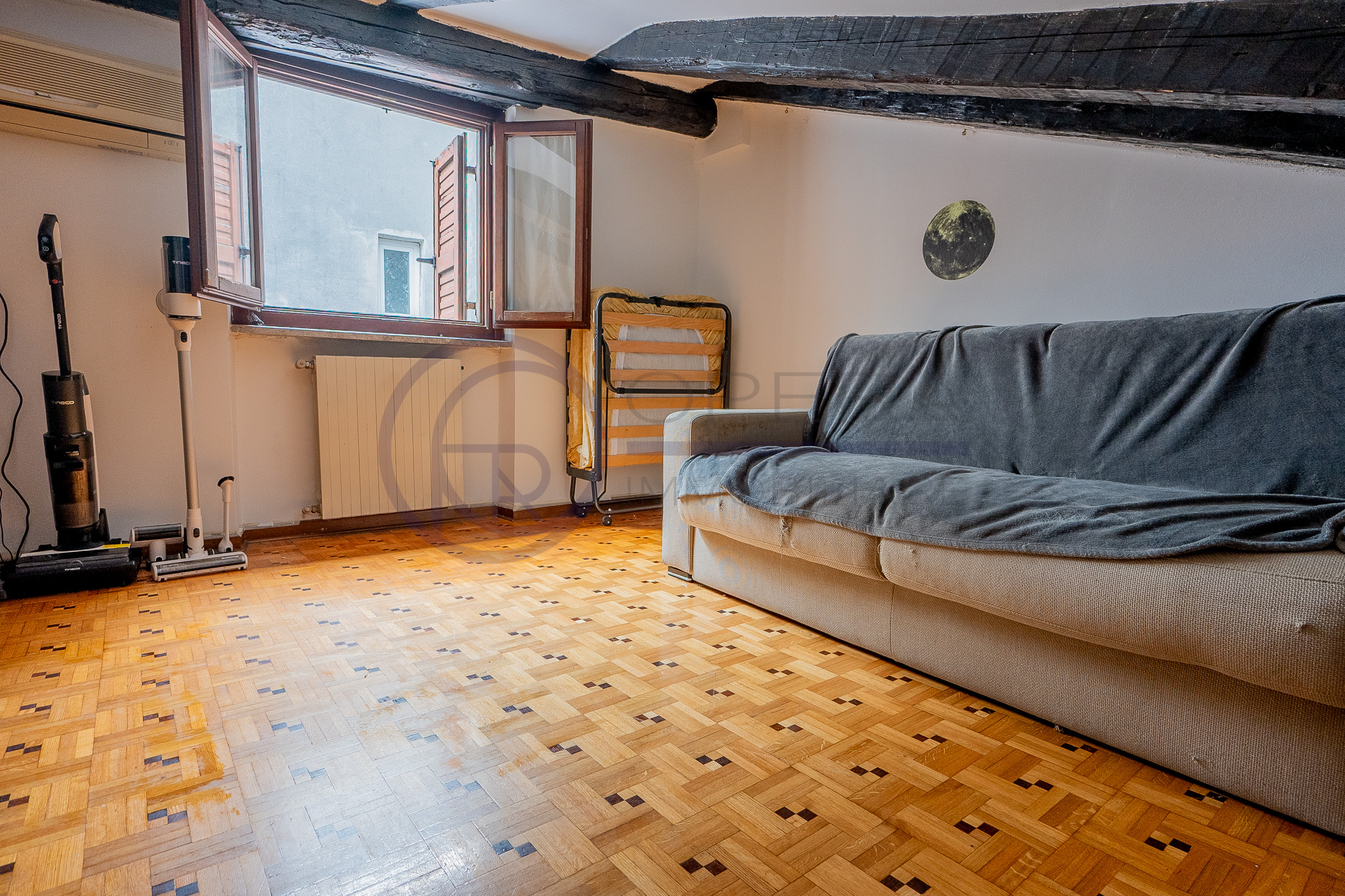In zona centrale, fornita da mezzi pubblici e dai principali servizi, luminosa mansarda sita al quinto piano di stabile fine ’800 senza ascensore.