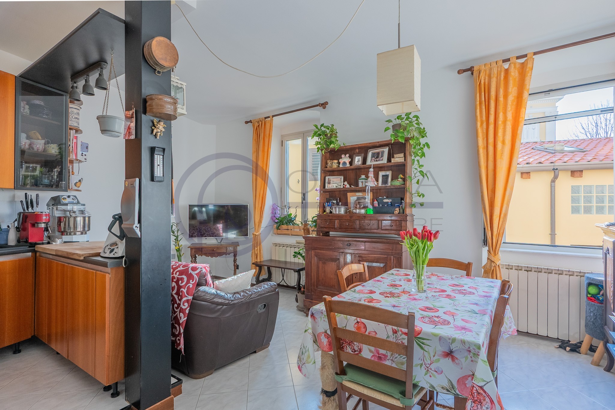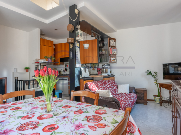 Al suo interno così composto: atrio d’ingresso, luminosa zona living con cucina a vista, camera matrimoniale con cabina armadio, seconda camera e bagno completo finestrato con box doccia.