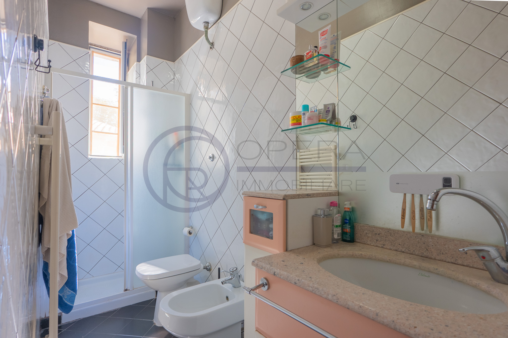 Termoautonomo, climatizzato, infissi in alluminio con vetrocamera e zanzariere.