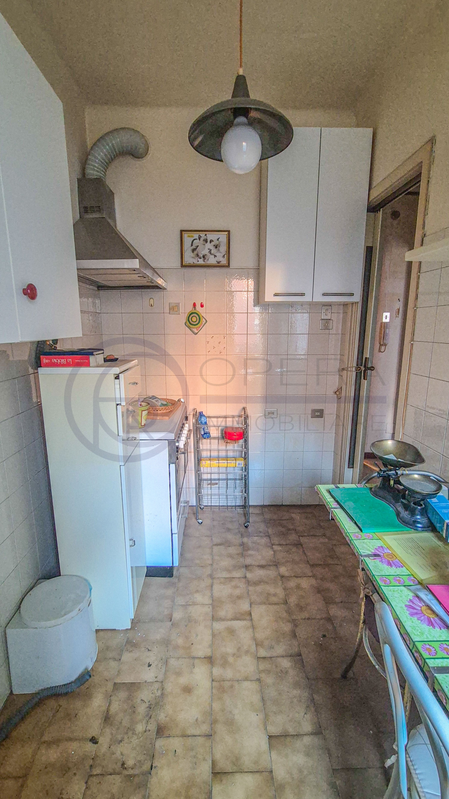L’appartamento sito al terzo piano è composto da atrio d’ingresso, cucina abitabile, stanza matrimoniale e bagno finestrato con box doccia, il riscaldamento è centralizzato, acqua calda con boiler elettrico, porta blindata e infissi in pvc vetrocamera.