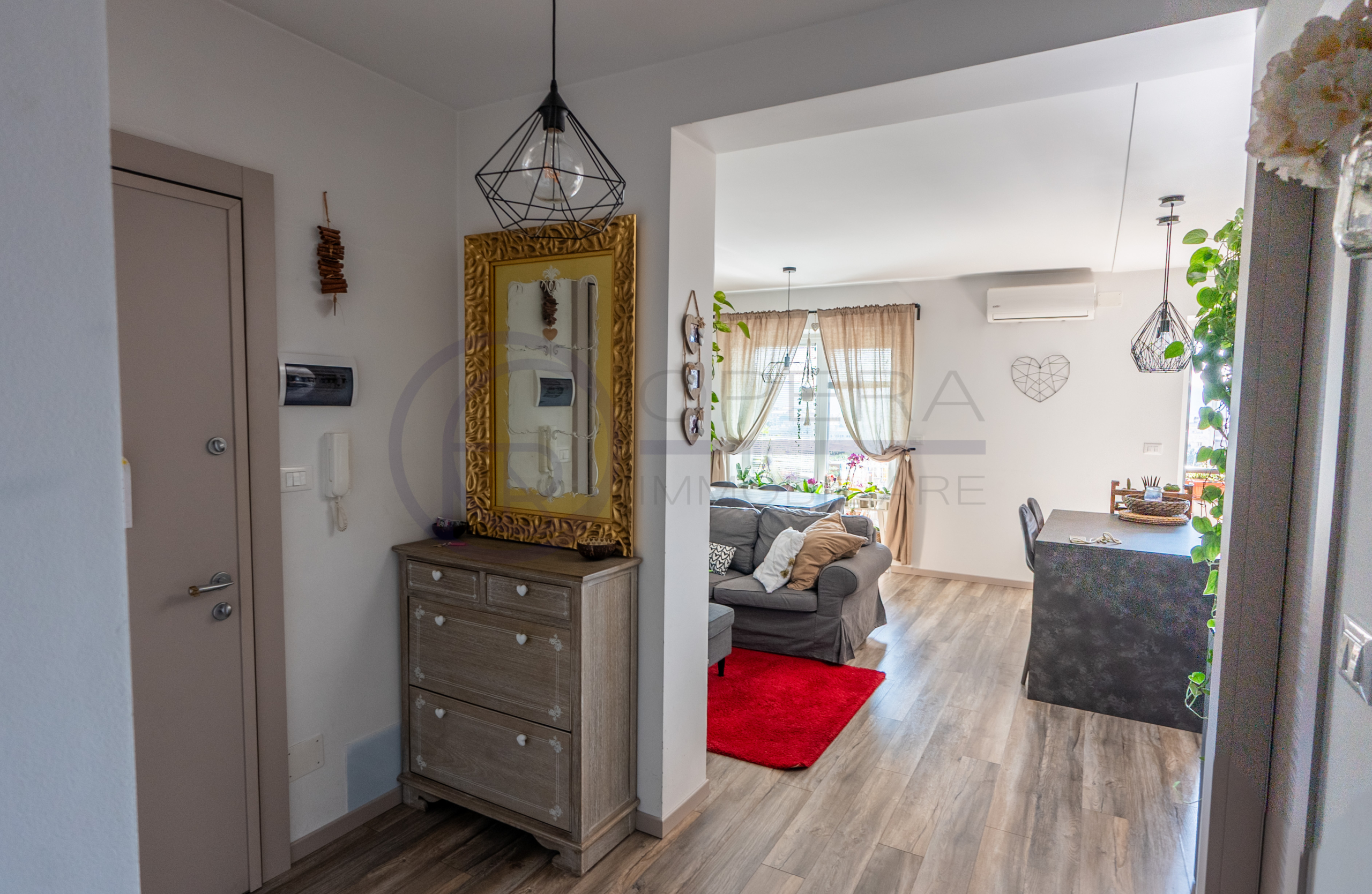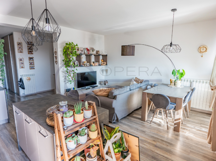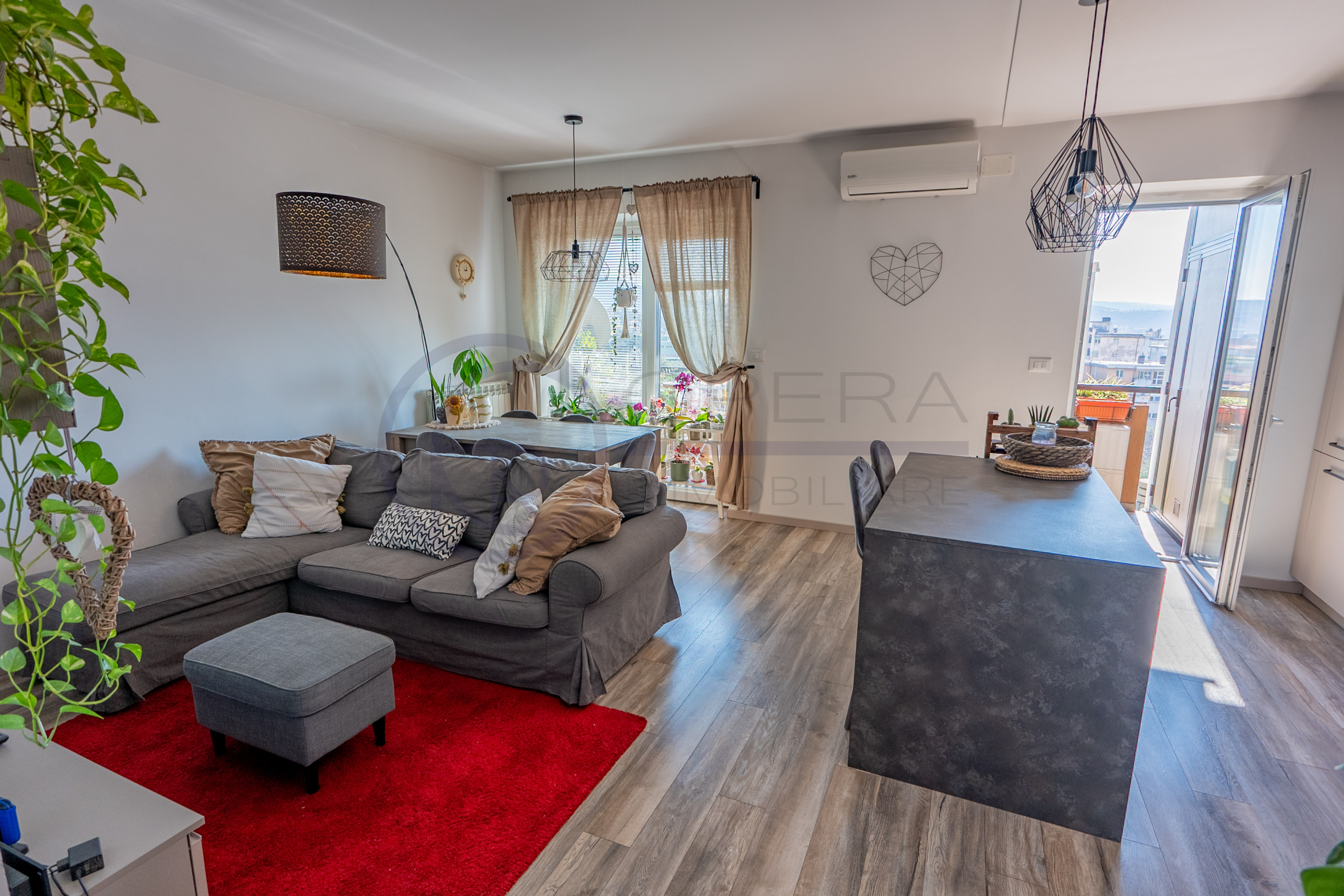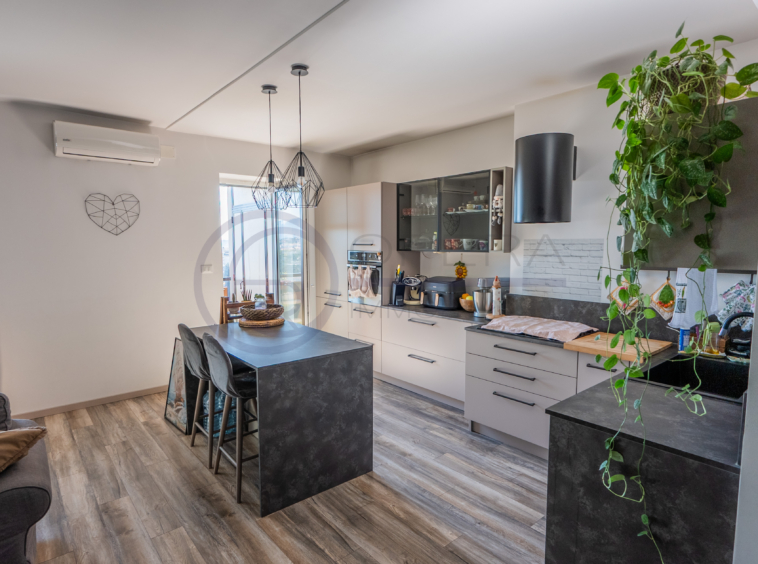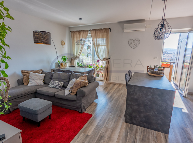L’appartamento si apre su un accogliente ingresso che conduce all’ampio soggiorno con cucina a vista, uno spazio moderno e conviviale con accesso diretto al terrazzo abitabile. La zona notte comprende una spaziosa camera matrimoniale, una stanza singola perfetta anche come studio o cameretta e due comodi servizi.