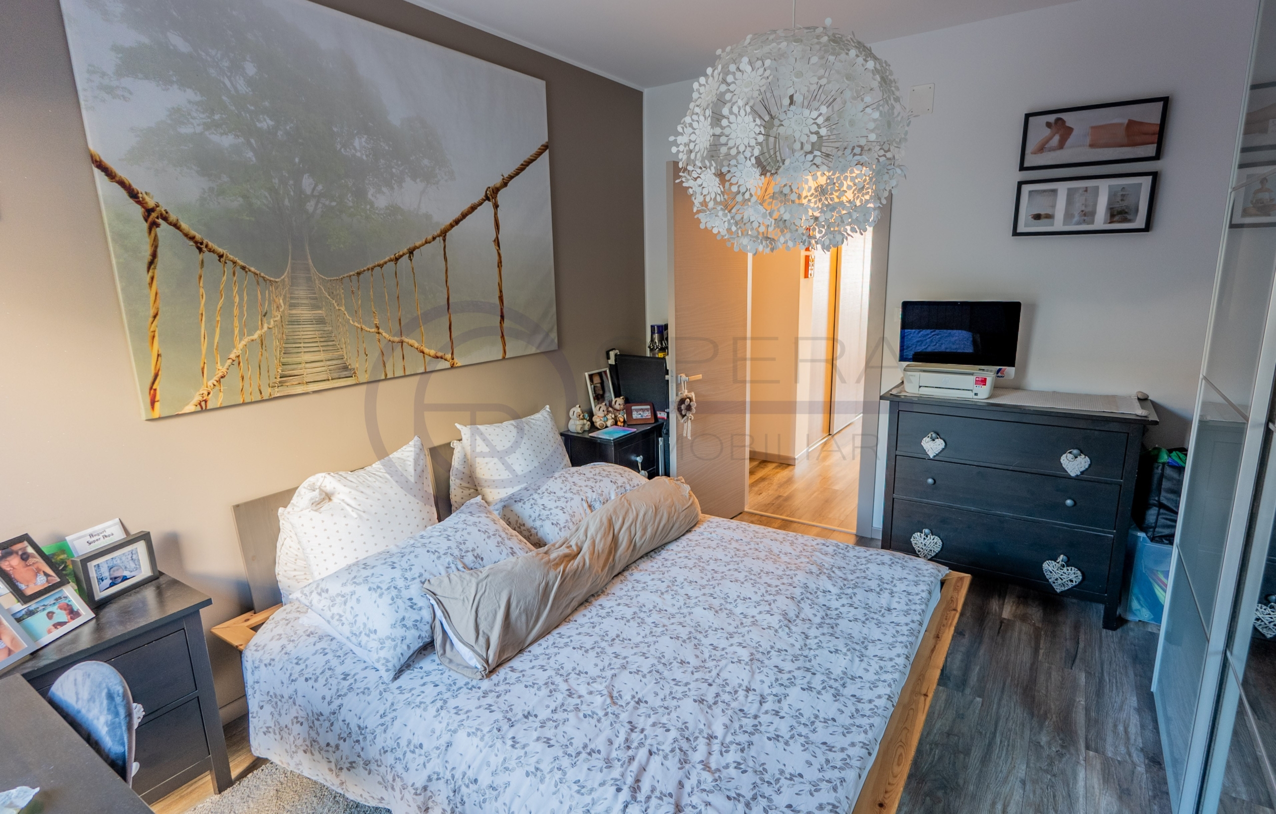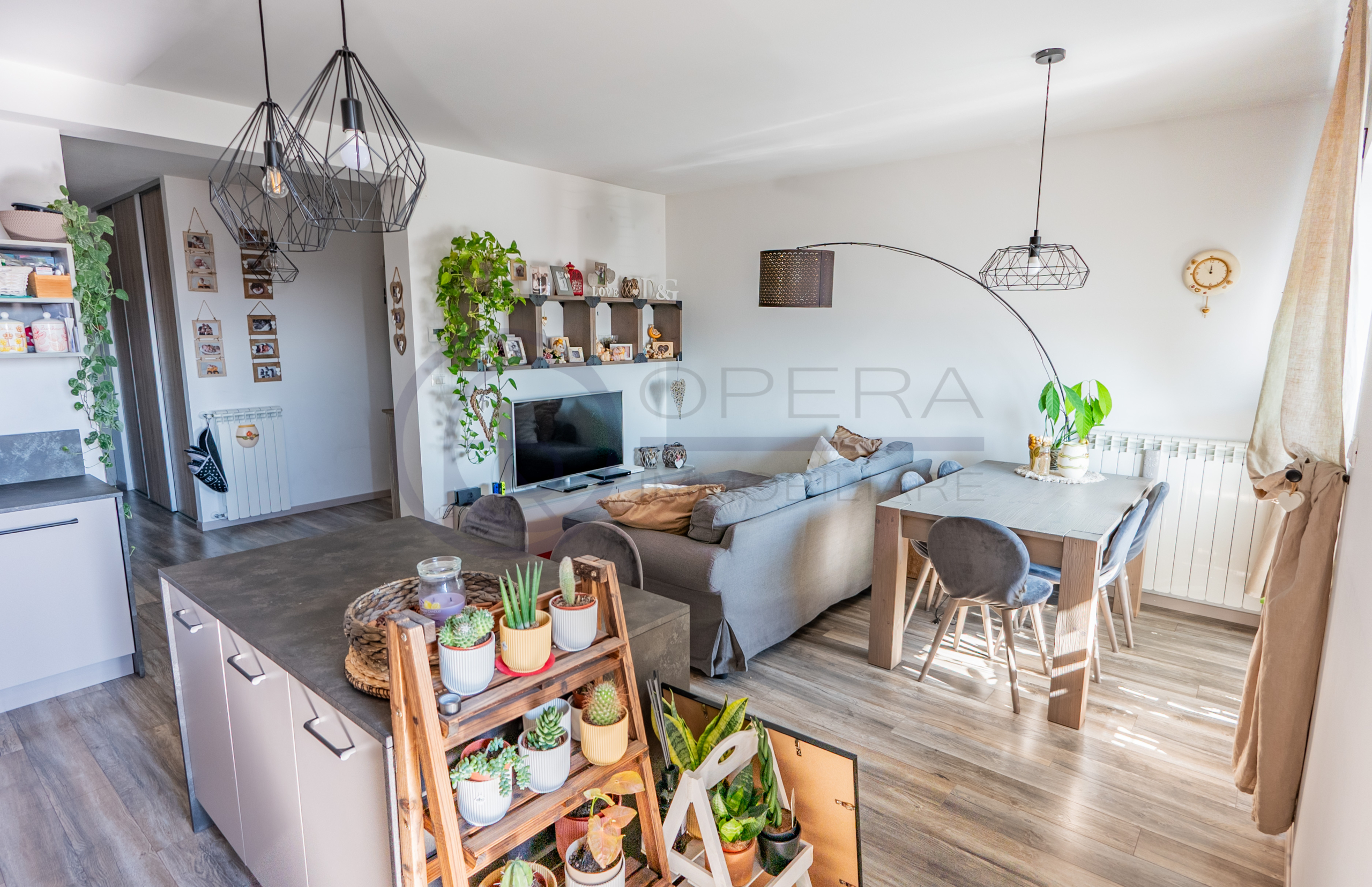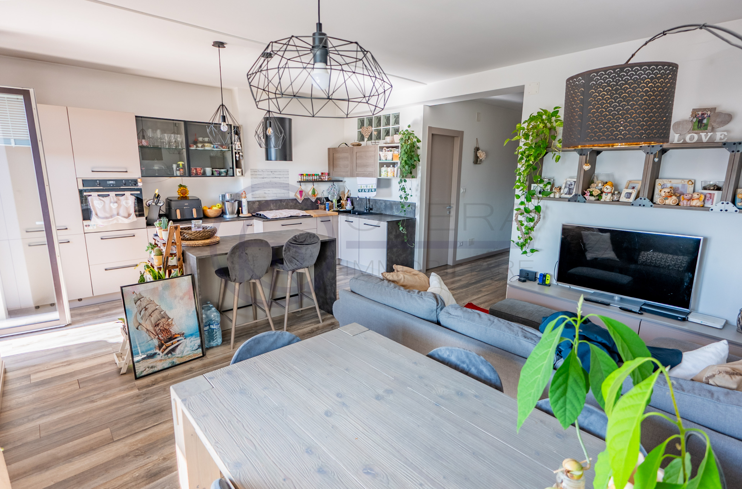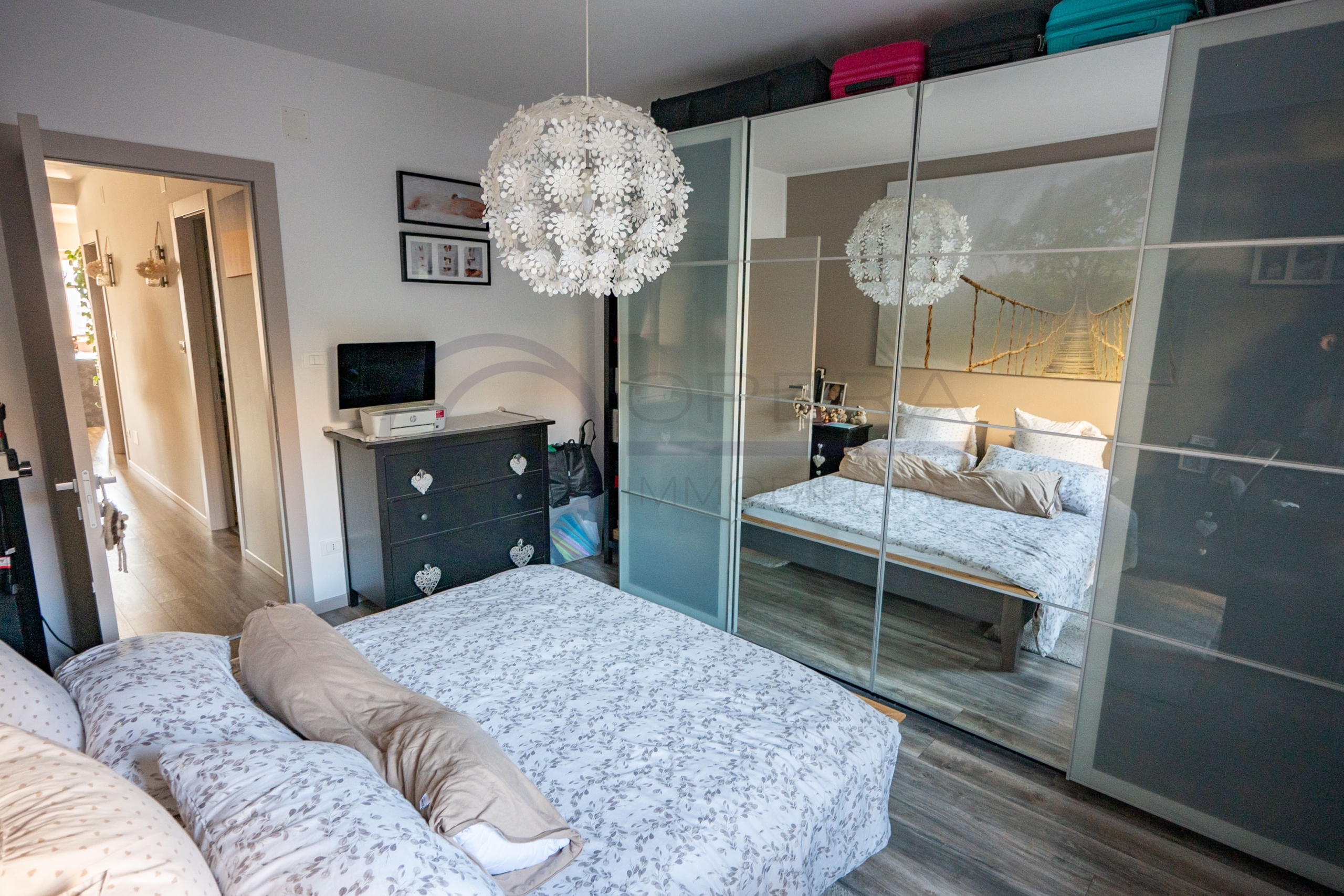 L’appartamento si apre su un accogliente ingresso che conduce all’ampio soggiorno con cucina a vista, uno spazio moderno e conviviale con accesso diretto al terrazzo abitabile. La zona notte comprende una spaziosa camera matrimoniale, una stanza singola perfetta anche come studio o cameretta e due comodi servizi.