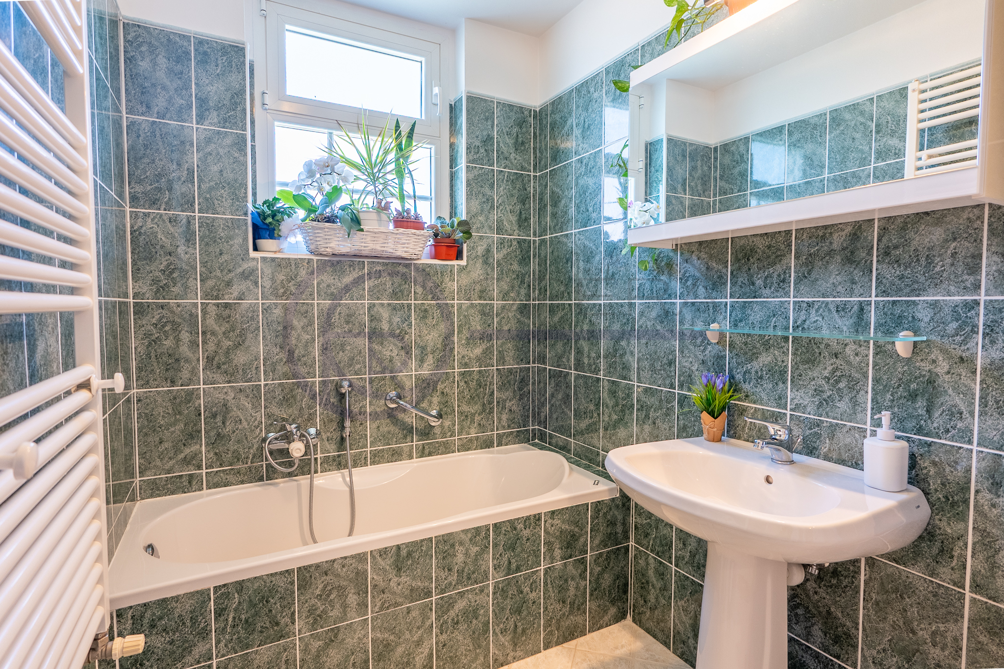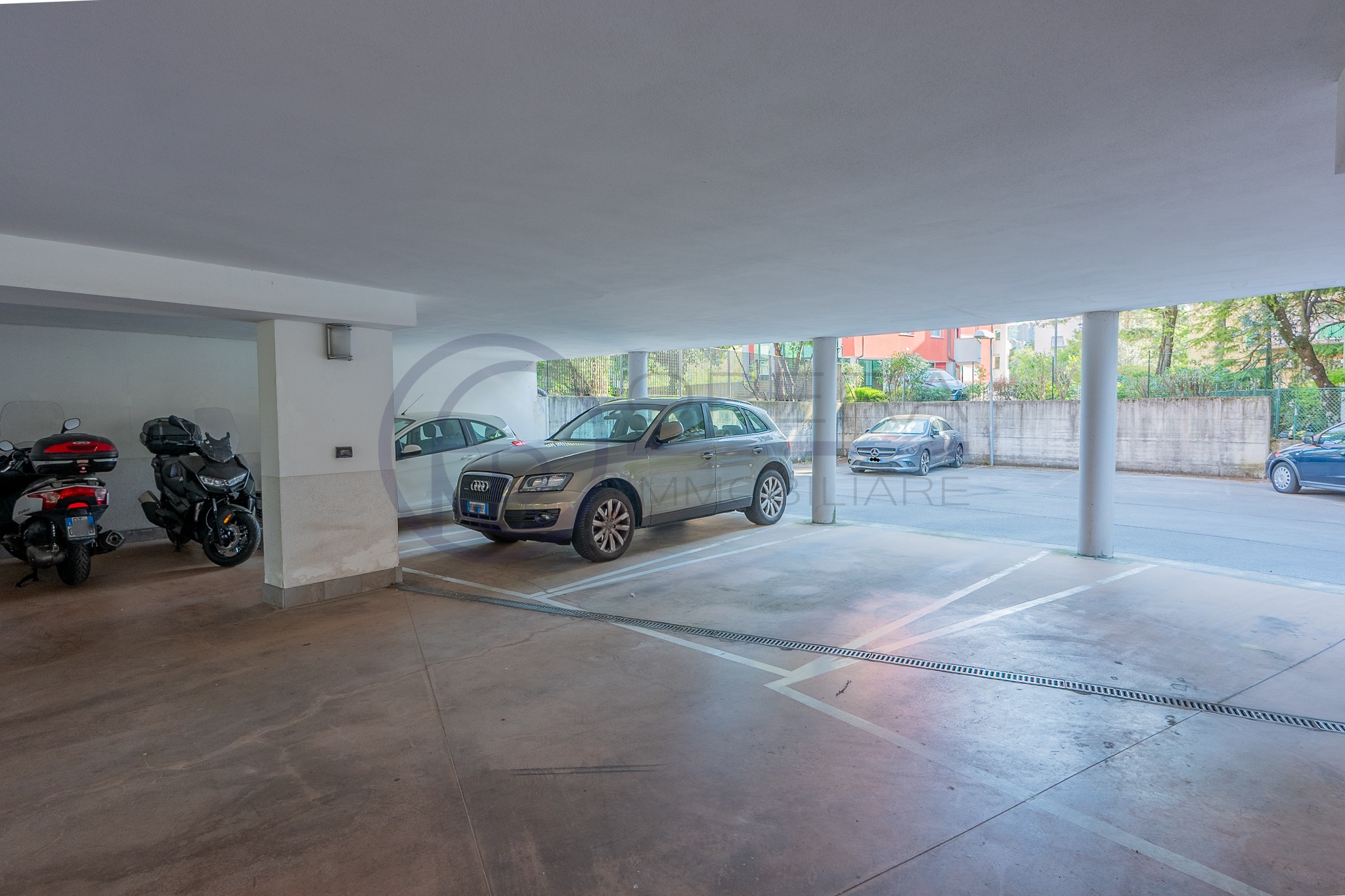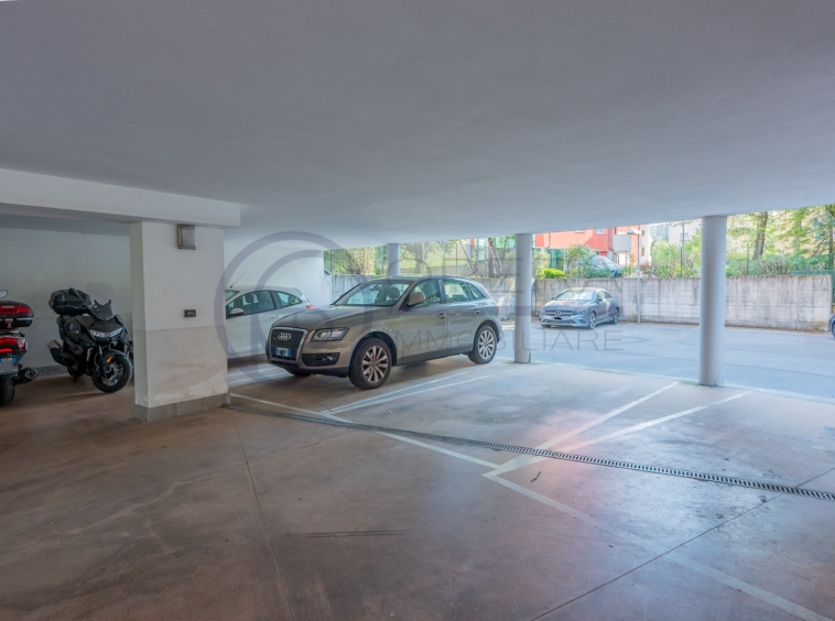 Completano la proprietà un posto auto coperto, una cantina in muratura di generose dimensioni e l’accesso al lastrico solare condominiale.