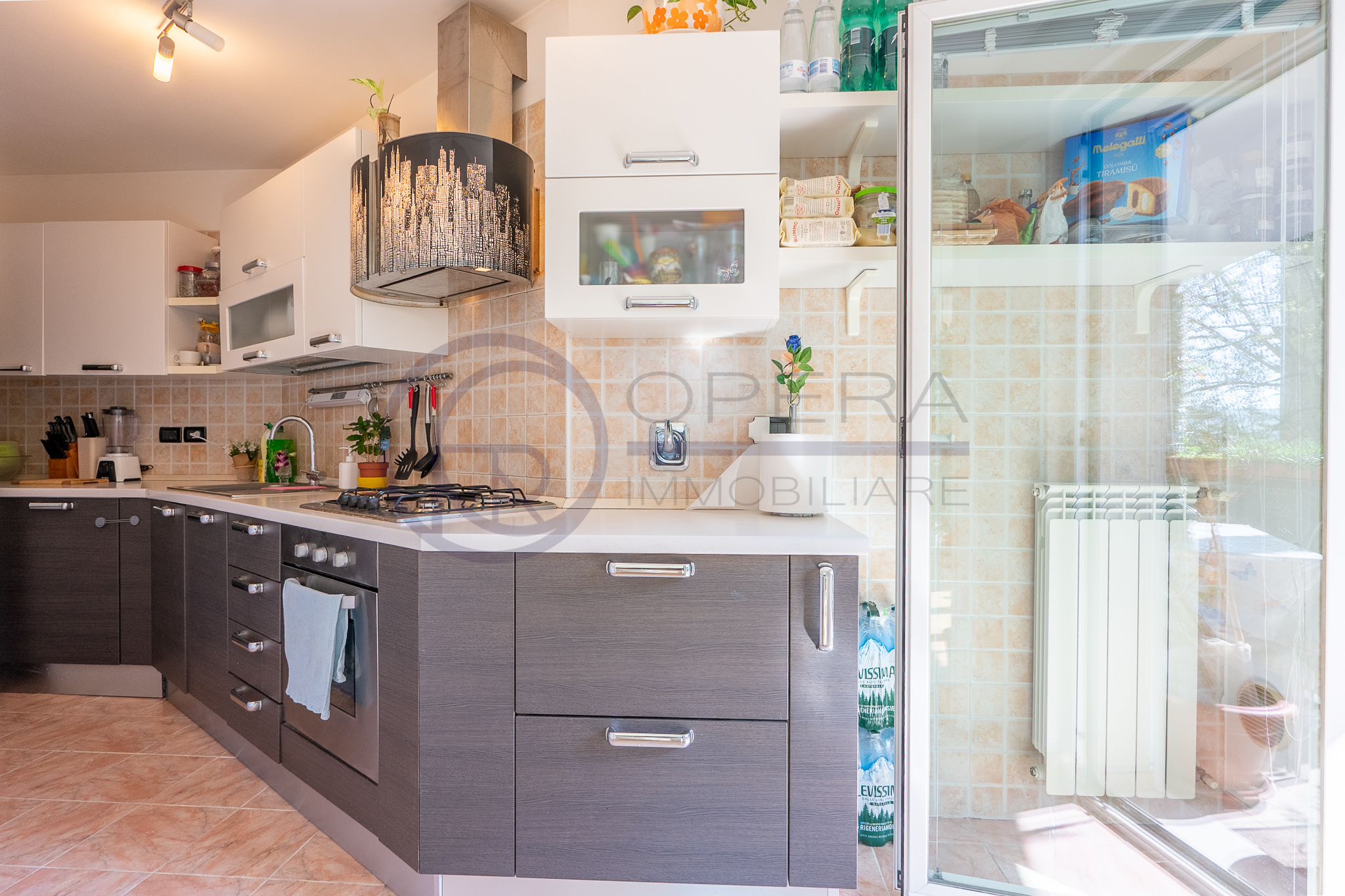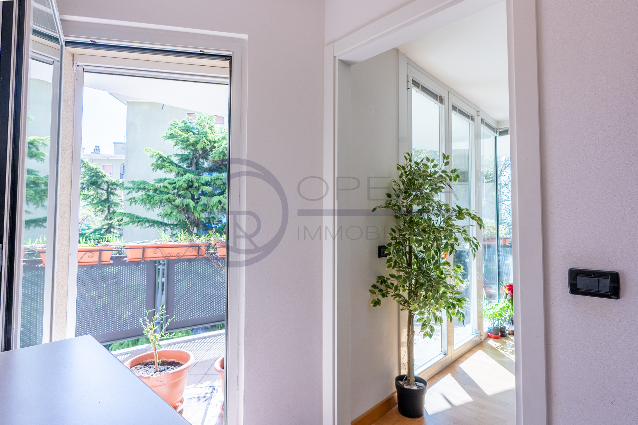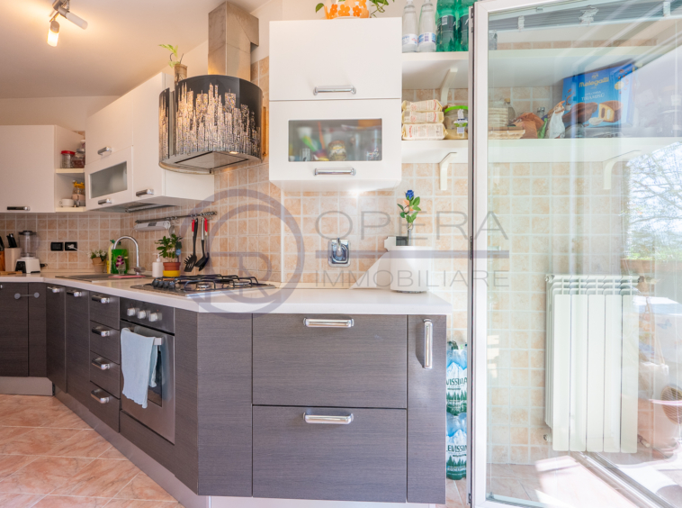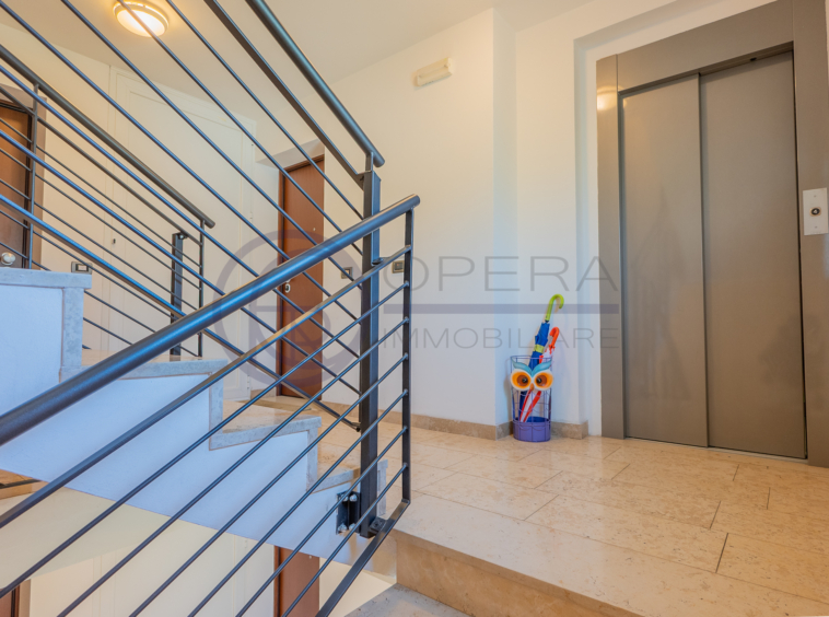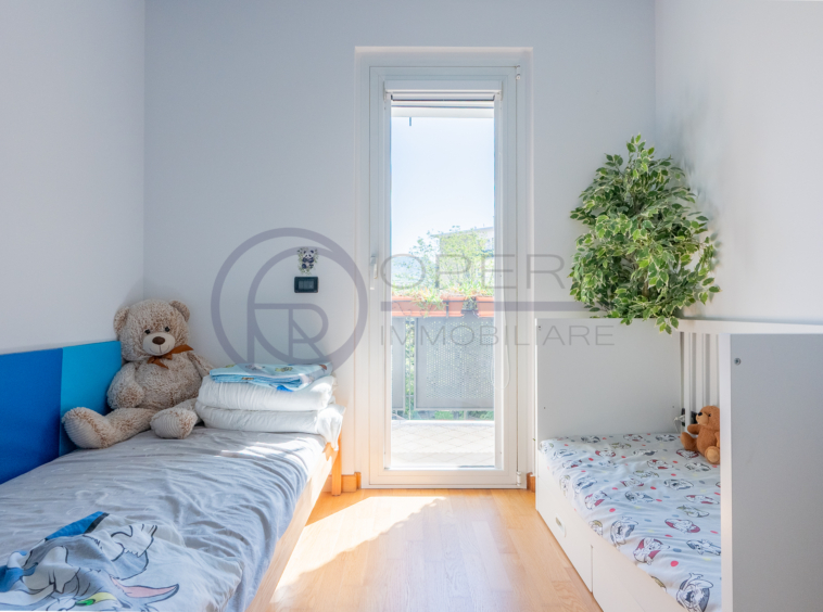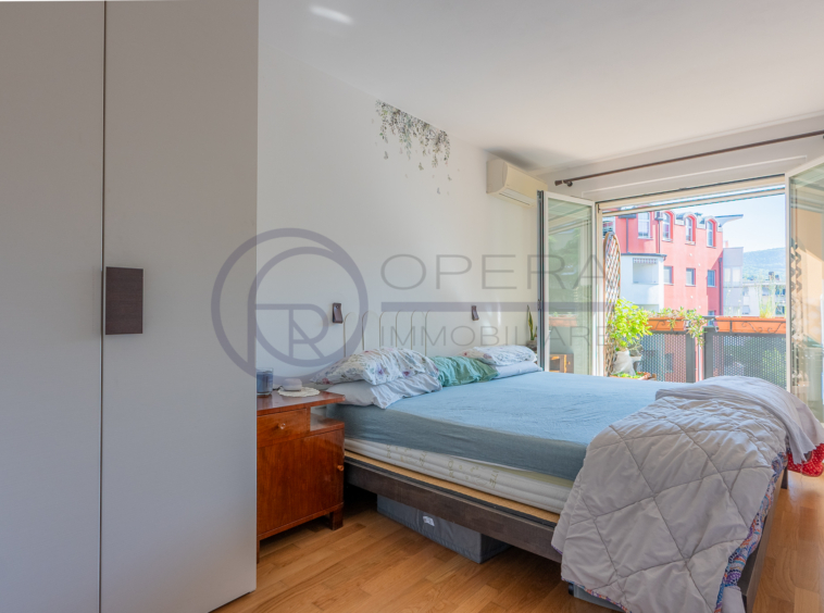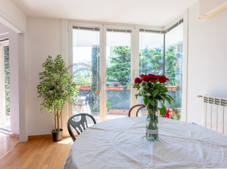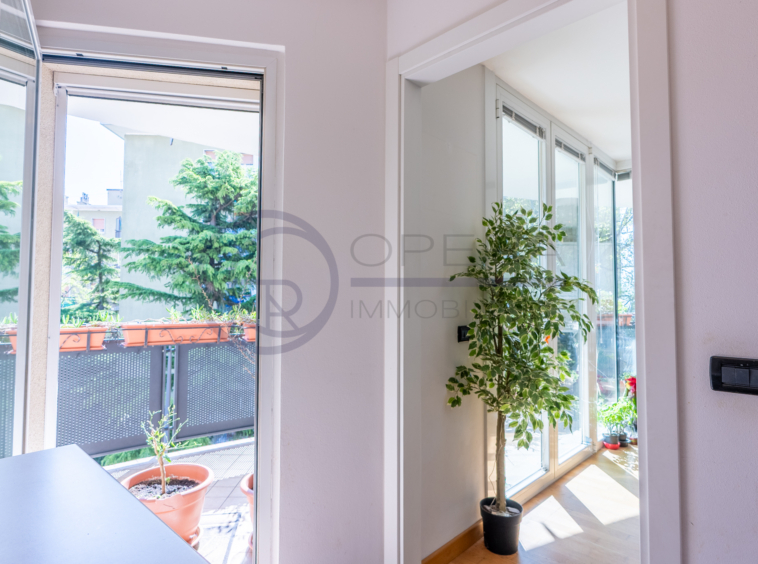 L’immobile si distingue per la straordinaria luminosità, grazie alle ampie vetrate che inondano gli ambienti di luce naturale. L’ingresso, attrezzato da un’armadiatura su misura ad uso guardaroba, introduce verso il luminoso soggiorno, da cui una porta-finestra collega direttamente la spaziosa terrazza abitabile, accessibile anche dalle altre stanze e ideale per momenti di relax all’aperto.