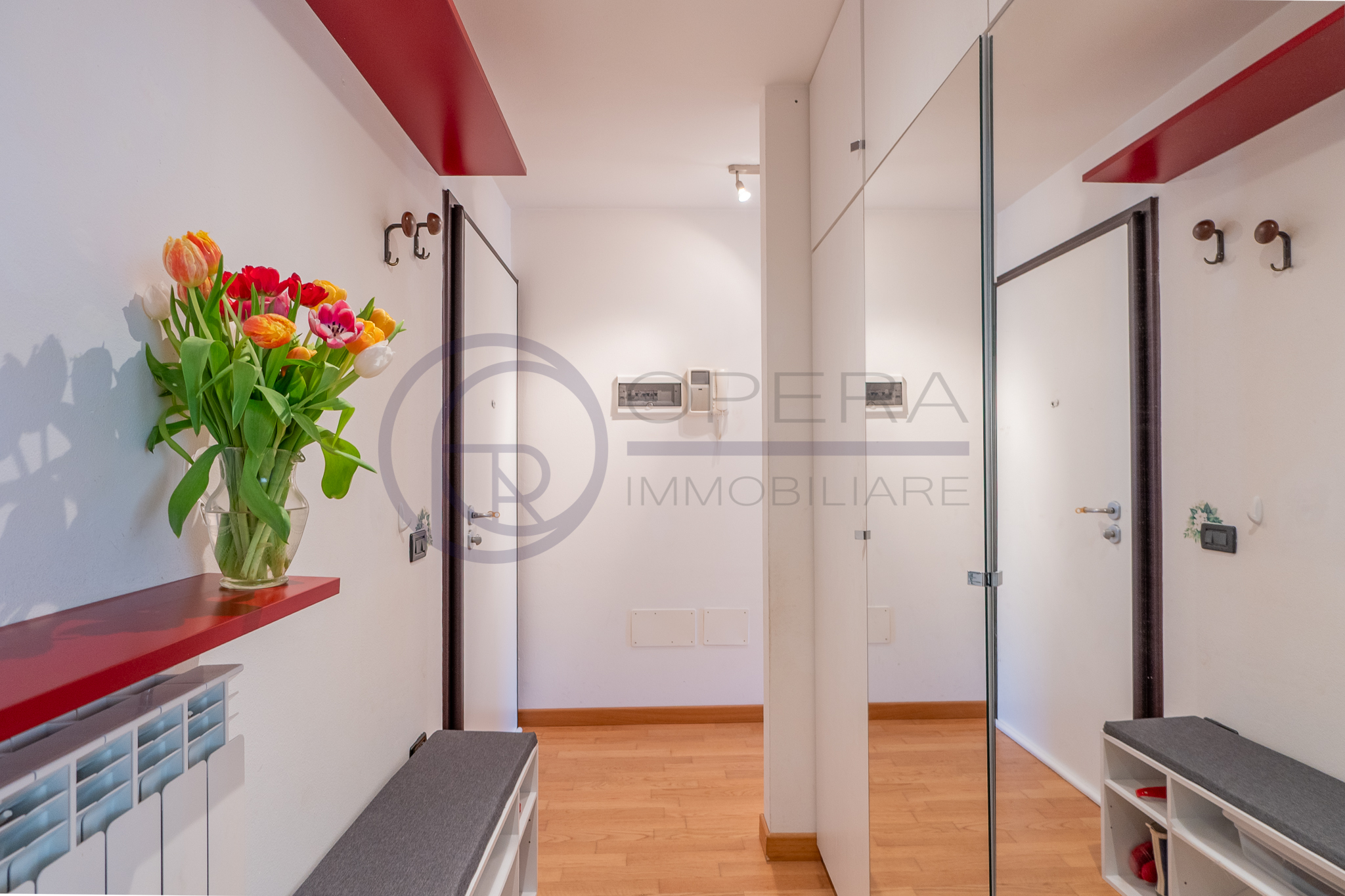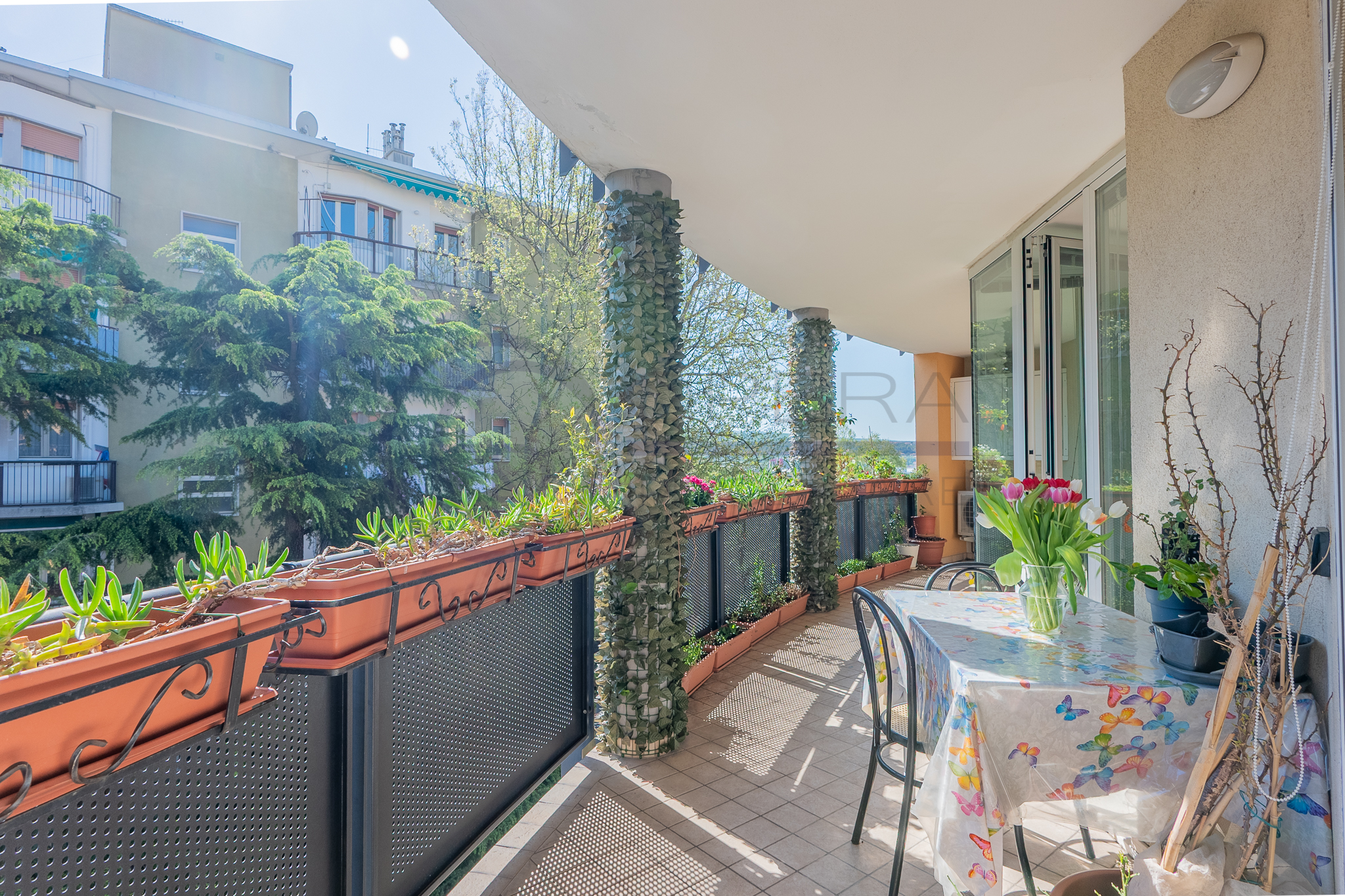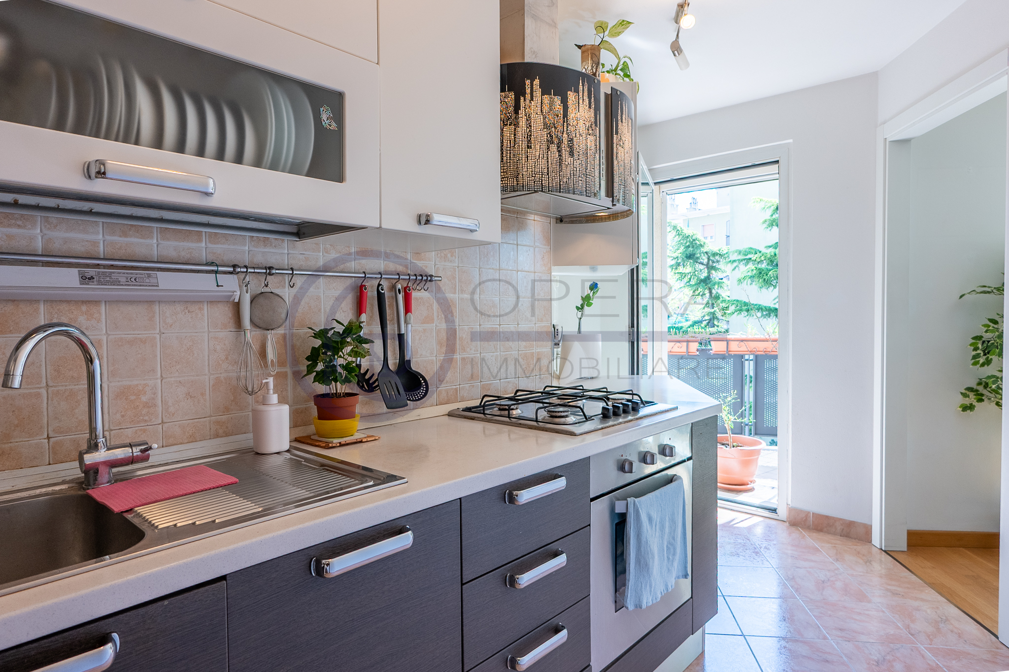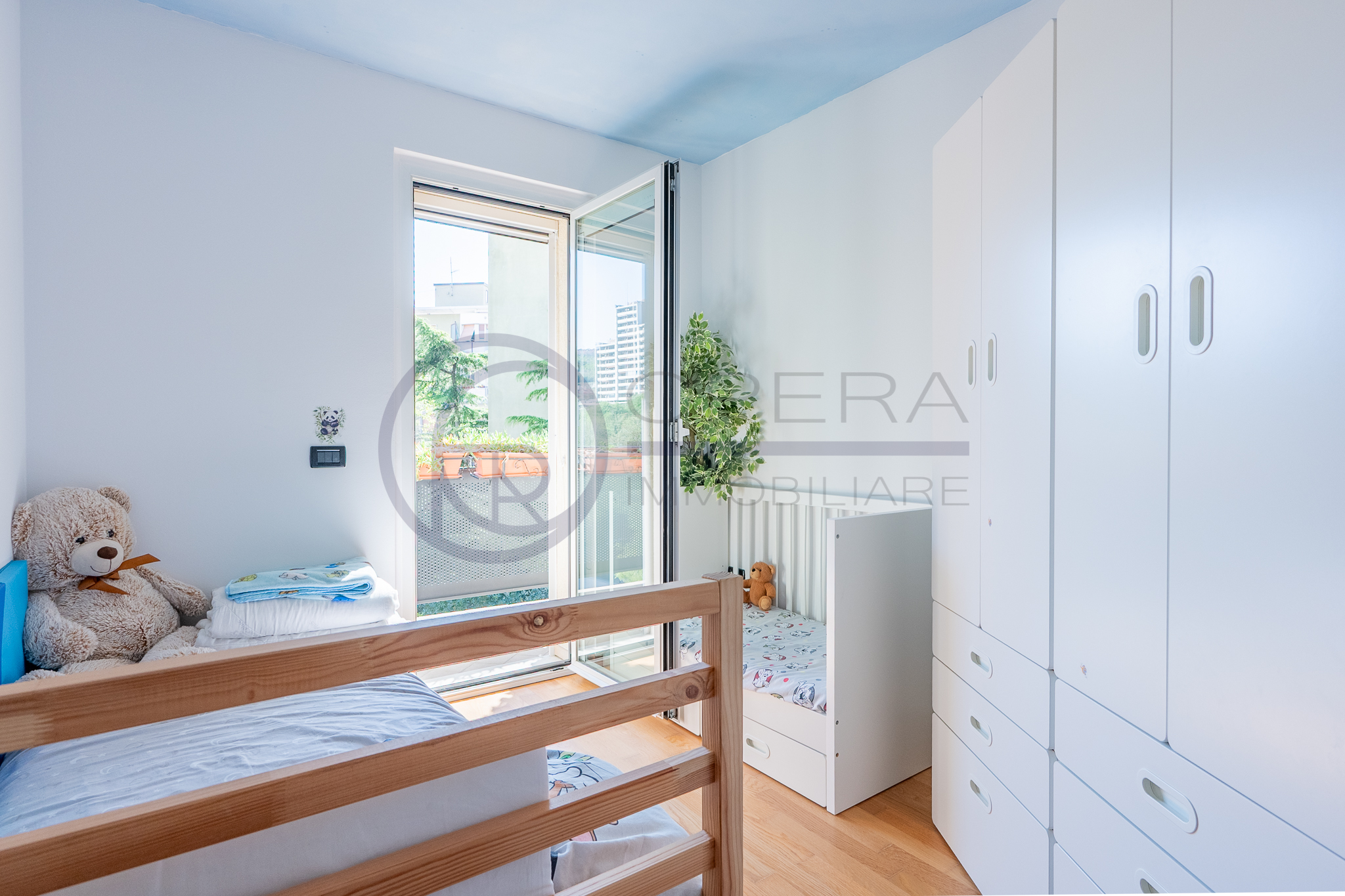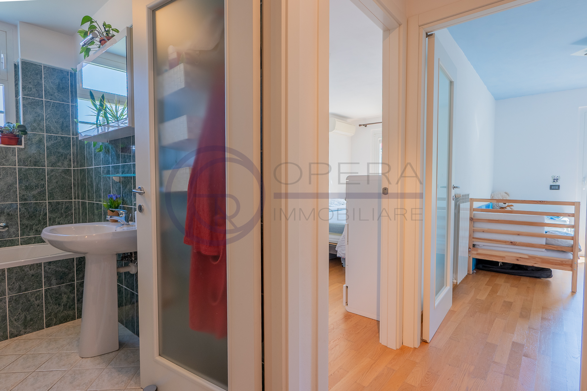 L’immobile si distingue per la straordinaria luminosità, grazie alle ampie vetrate che inondano gli ambienti di luce naturale. L’ingresso, attrezzato da un’armadiatura su misura ad uso guardaroba, introduce verso il luminoso soggiorno, da cui una porta-finestra collega direttamente la spaziosa terrazza abitabile, accessibile anche dalle altre stanze e ideale per momenti di relax all’aperto.