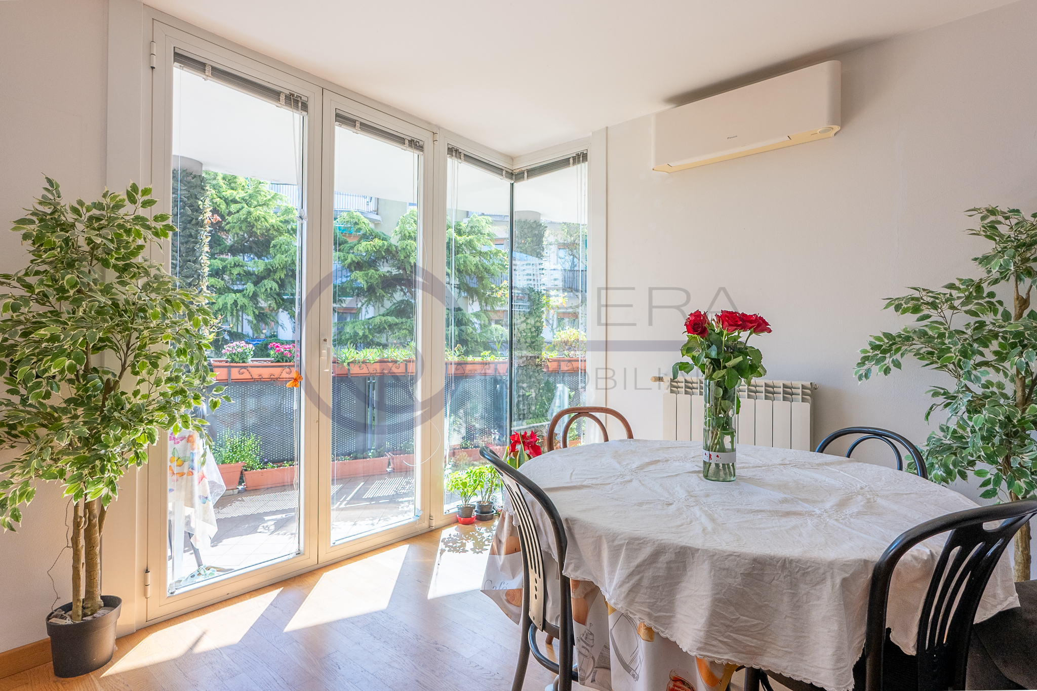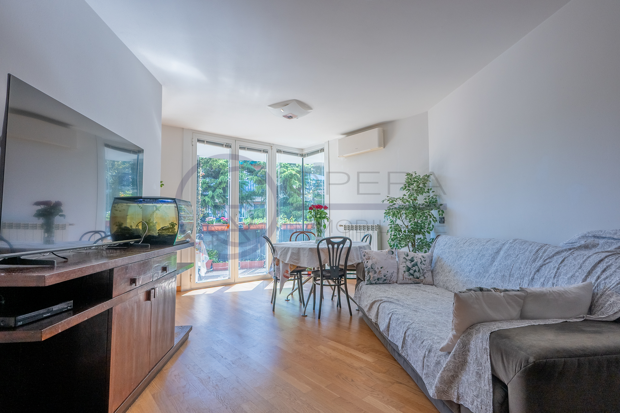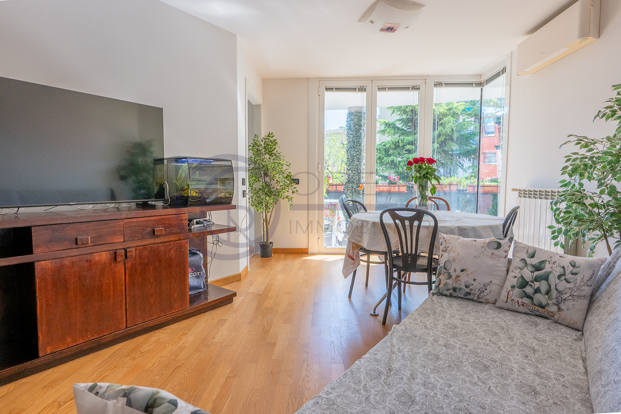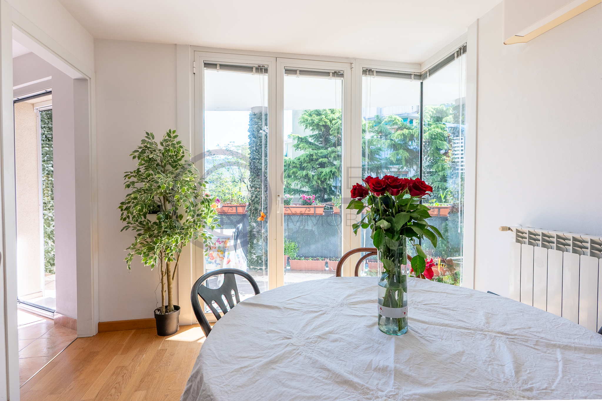 L’immobile si distingue per la straordinaria luminosità, grazie alle ampie vetrate che inondano gli ambienti di luce naturale. L’ingresso, attrezzato da un’armadiatura su misura ad uso guardaroba, introduce verso il luminoso soggiorno, da cui una porta-finestra collega direttamente la spaziosa terrazza abitabile, accessibile anche dalle altre stanze e ideale per momenti di relax all’aperto.