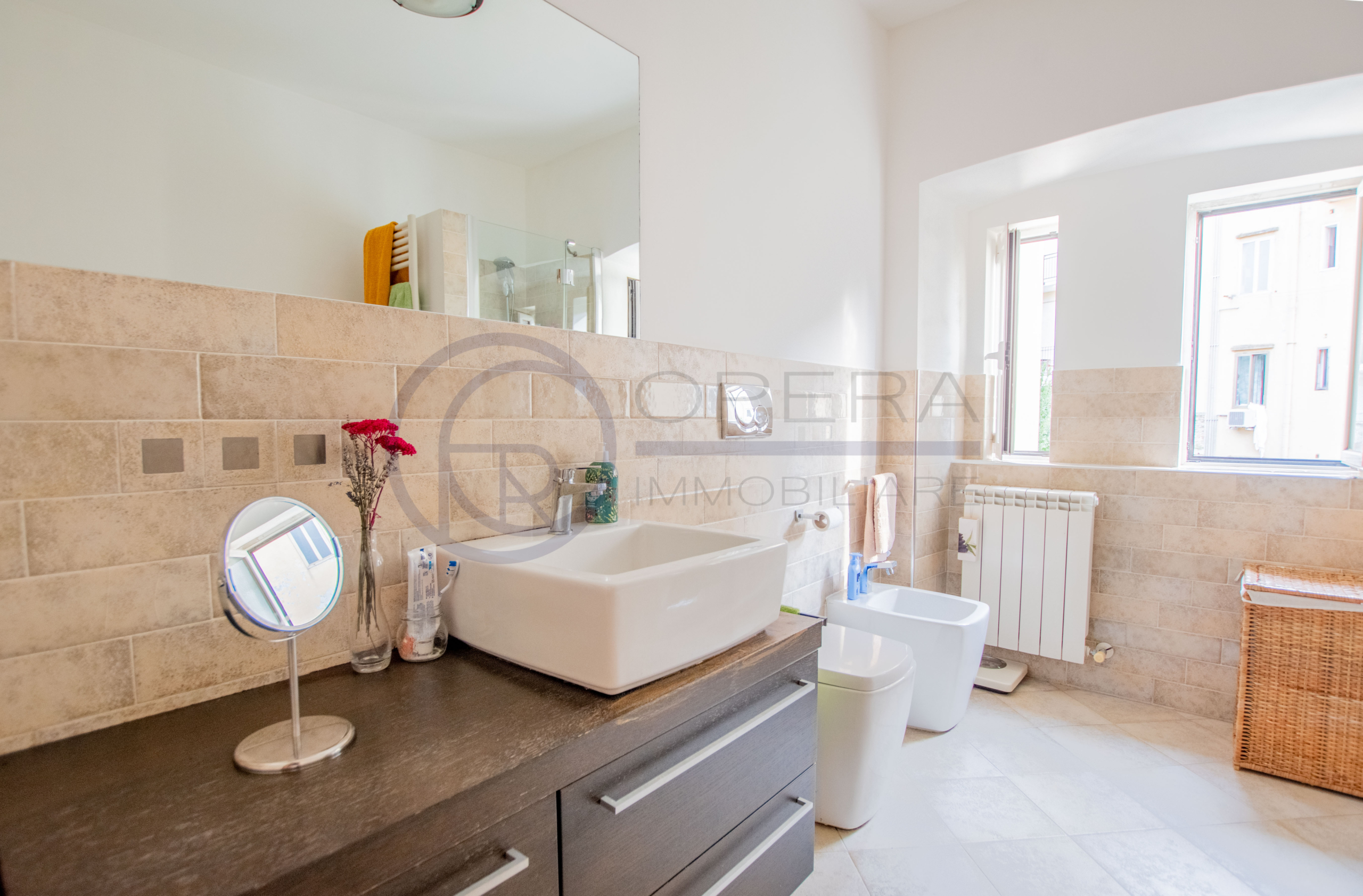 Composizione: ingresso, zona giorno doppia, cucina abitabile, camera matrimoniale, seconda camera, bagno completo e finestrato con box doccia e vasca, ripostiglio/lavanderia.