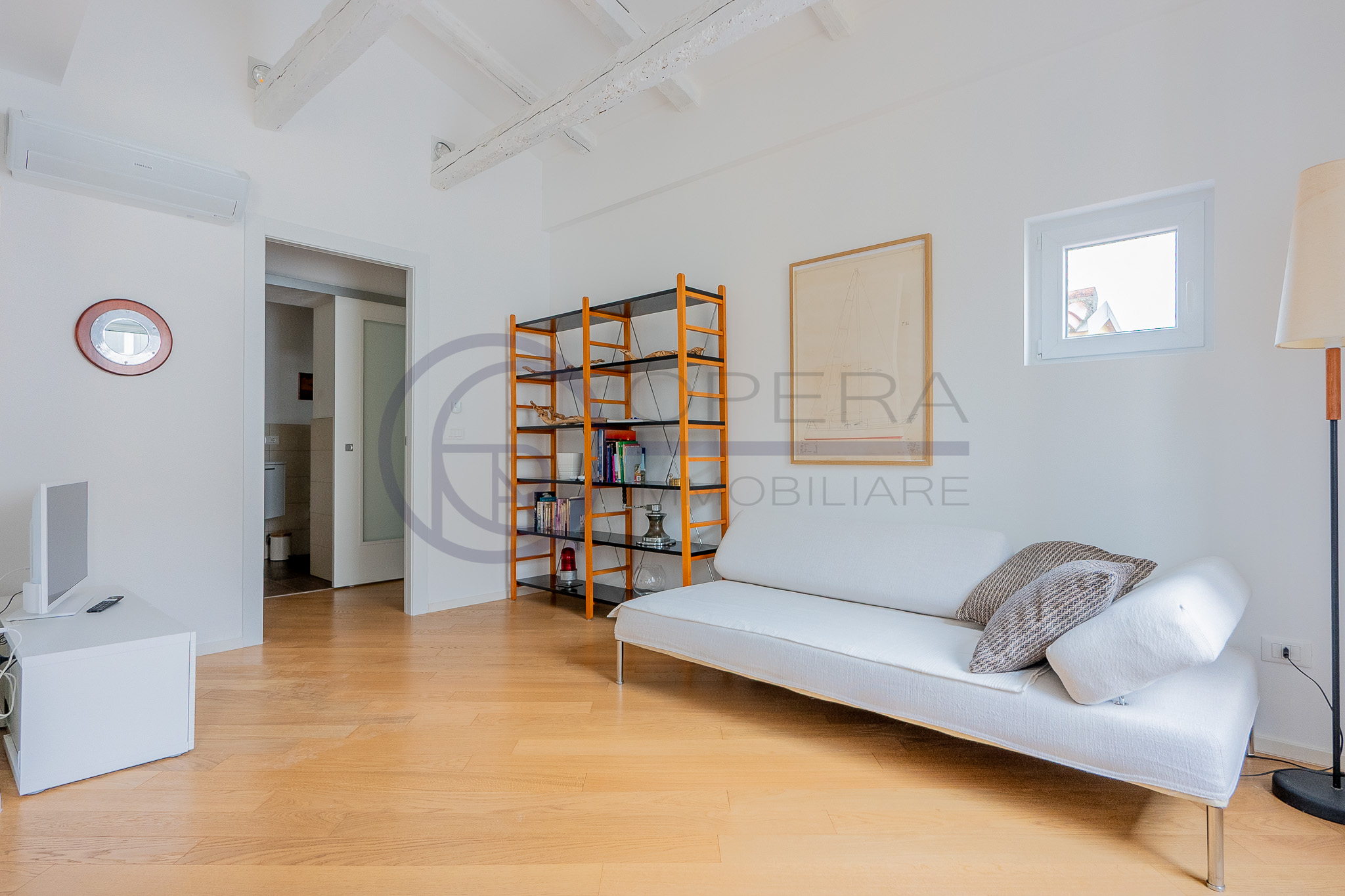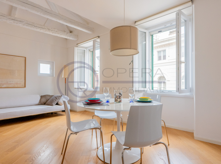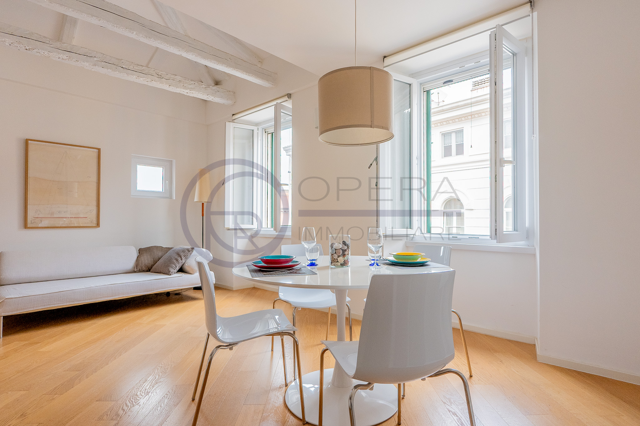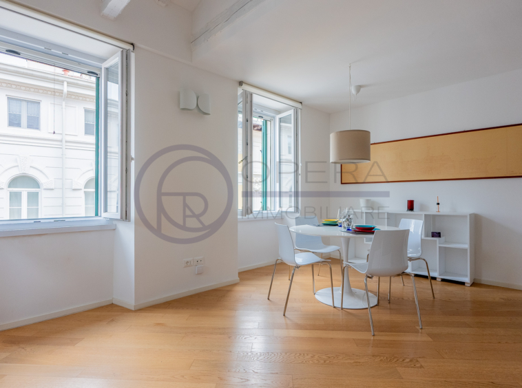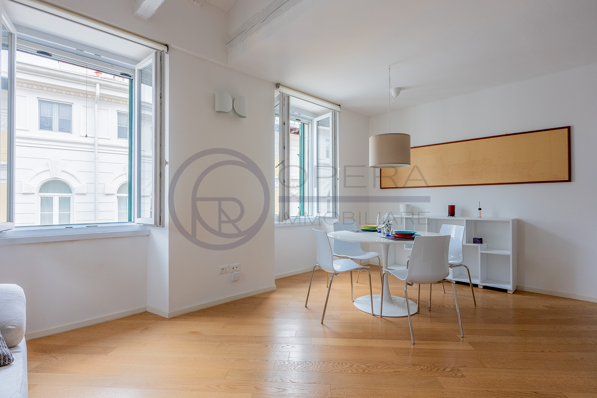 In zona centrale a poca distanza da Cavana, splendido bilocale arredato sito al quarto piano di stabile d’epoca SENZA ascensore, con giardino di proprietà e posto auto in autorimessa.