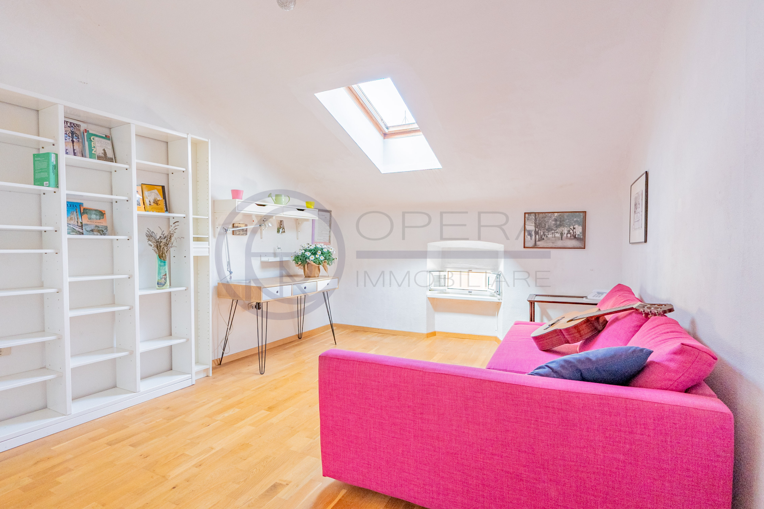 Estremamente luminoso grazie ai velux, silezioso grazie all’affaccio sul Viale XX Settembre.
